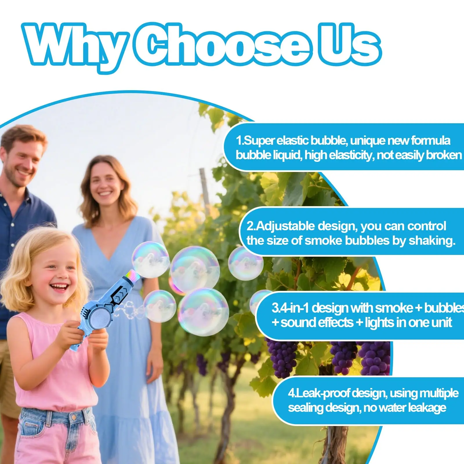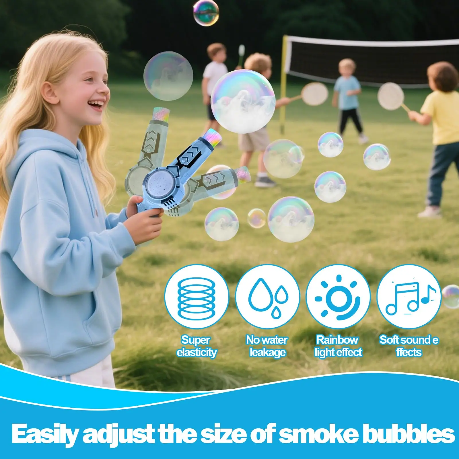 EPT Spray Bubble Machine Kids Outdoor Bubble Toys Magic Bubble Gun with Smoke Inside Summer Toys