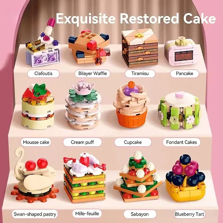 EPT Food Series Afternoon Tea Cake Sweet Dessert Decorative Small Particle Building Block Brick Toy Sets for Children