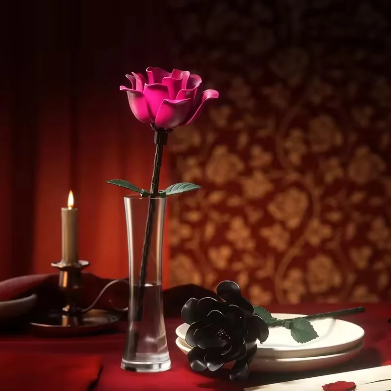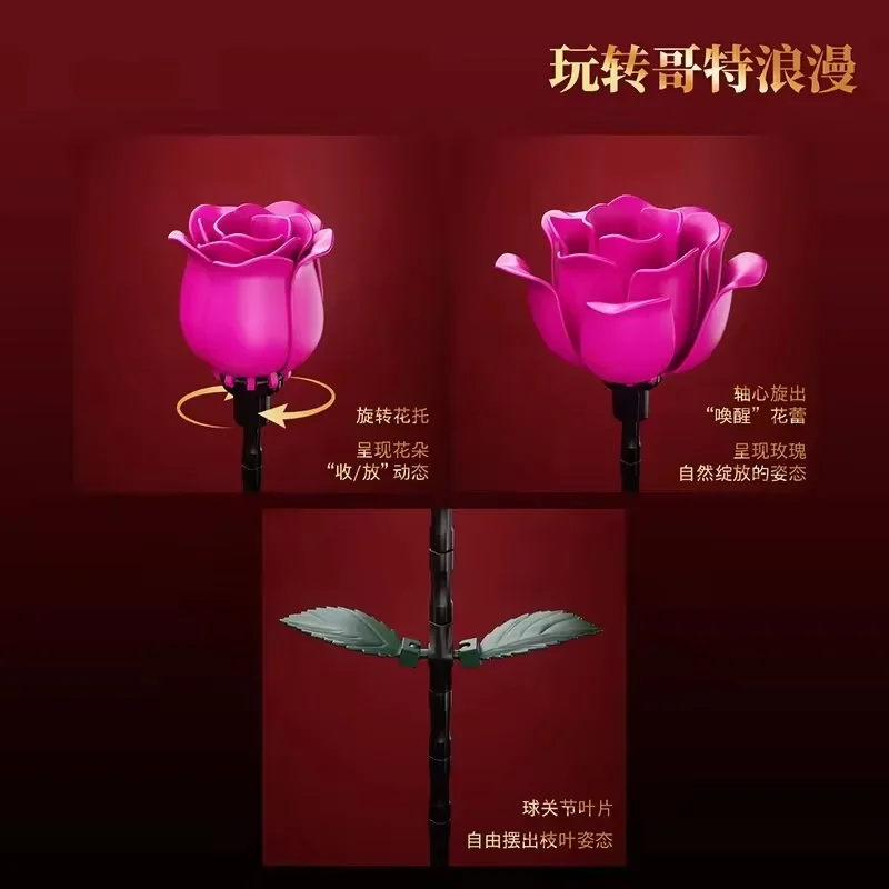 EPT Hot Selling Beautiful Flower Building Block Home Decoration Rotating Bloom Flower Building Block Set