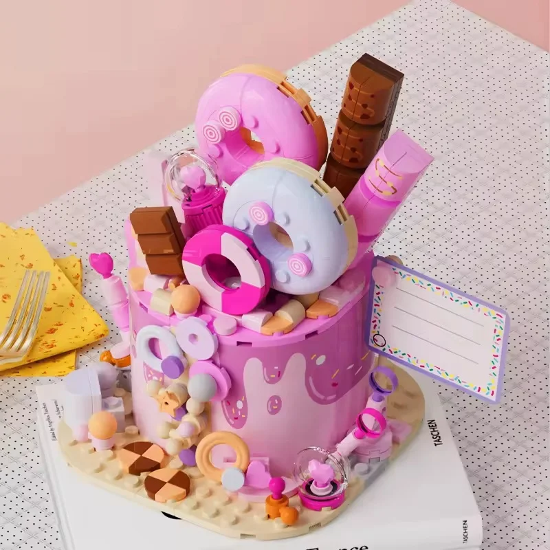 EPT Food Series Kids Educational Toy 5 Styles Beautiful Delicious Cake Alice Afternoon Tea Heart Cake Kids Building Block