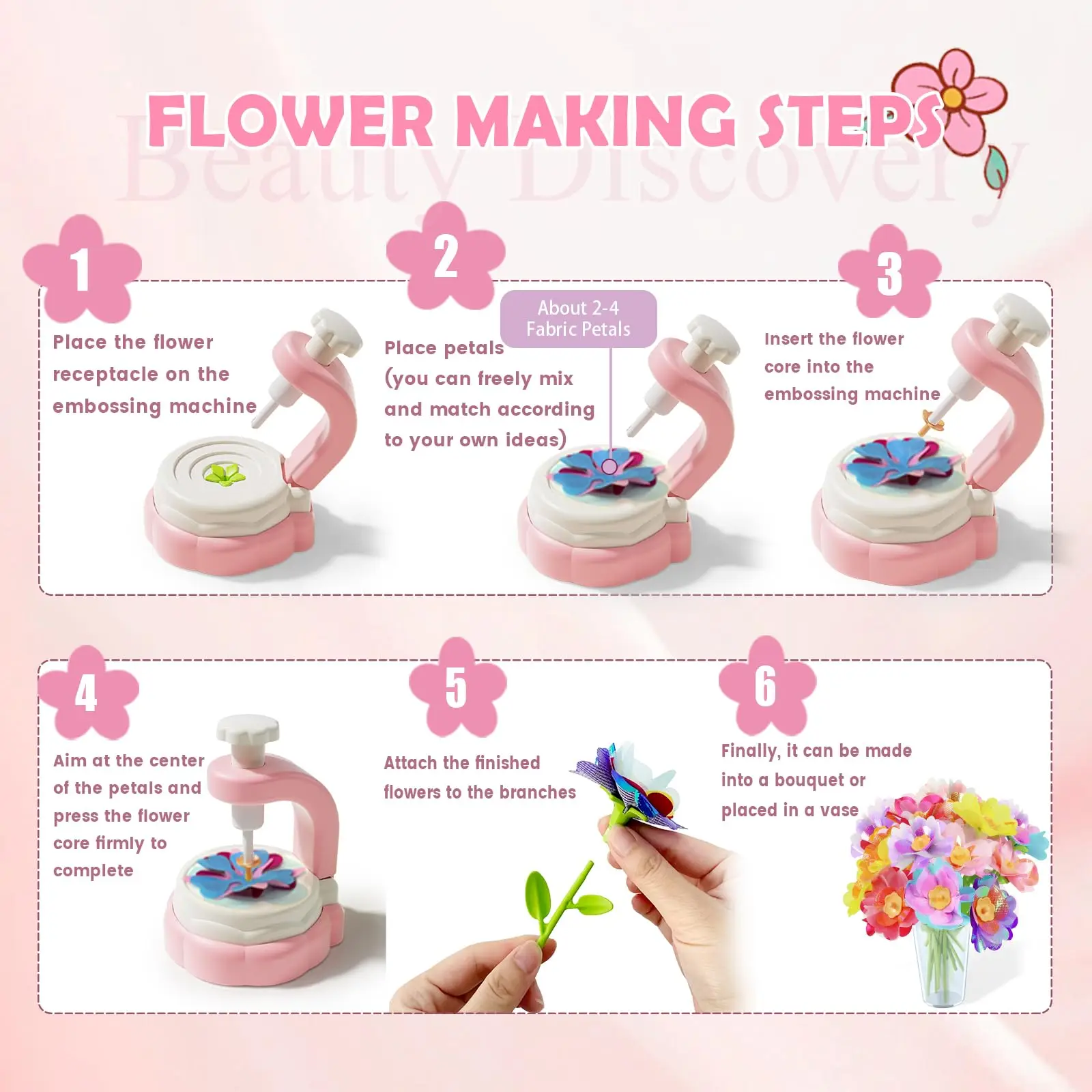 EPT Handmade Fabric Flower Bouquets Toy DIY Flower Craft Kits Build Your Own Bouquet Arts Crafts Toy