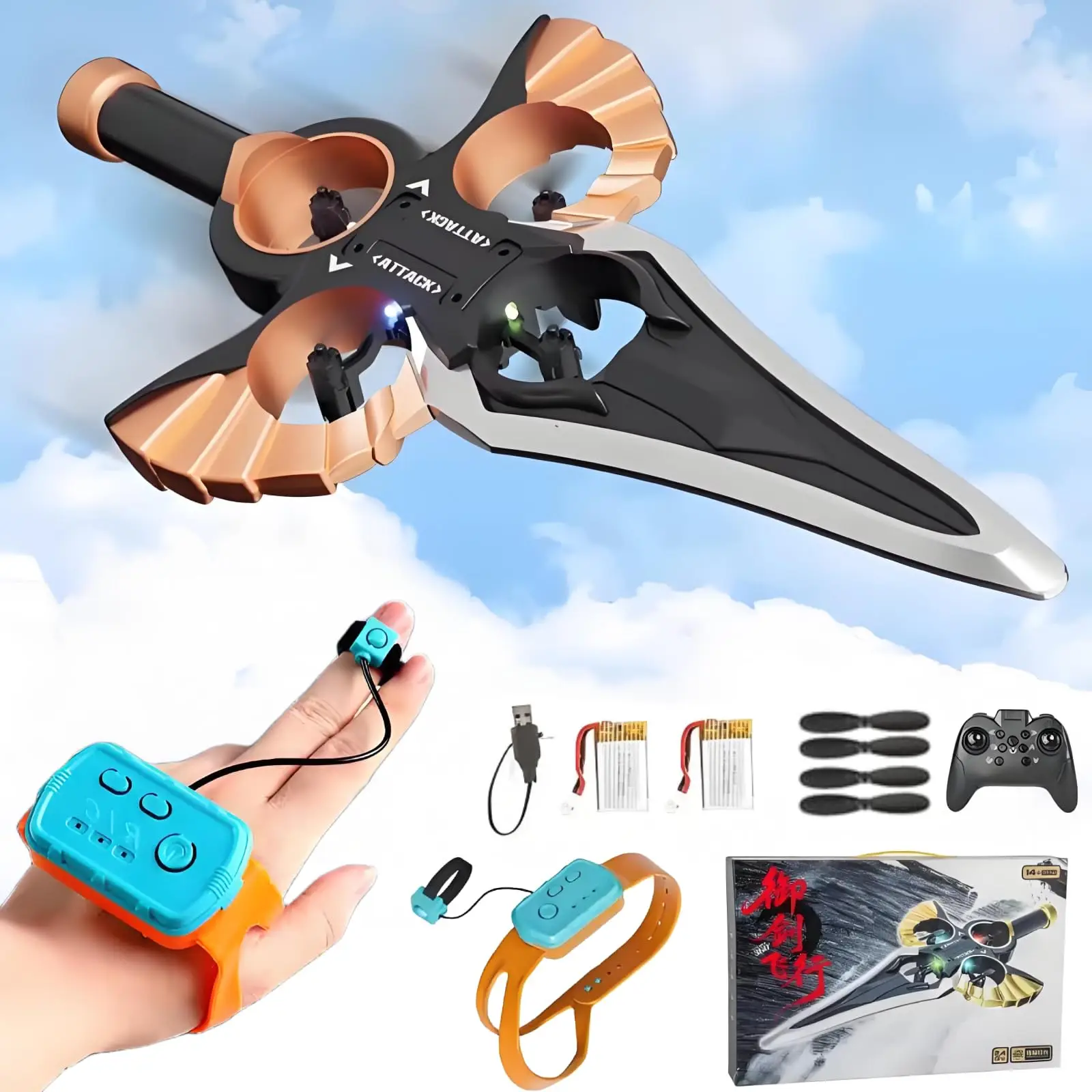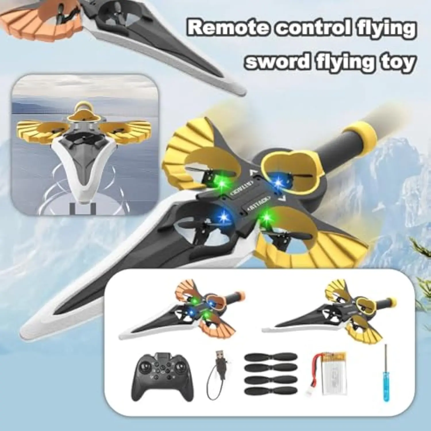 EPT Dual Control RC Toy Luminous Laser Sword and 360-Degree Rolling Drone Foam Remote Flying Sword