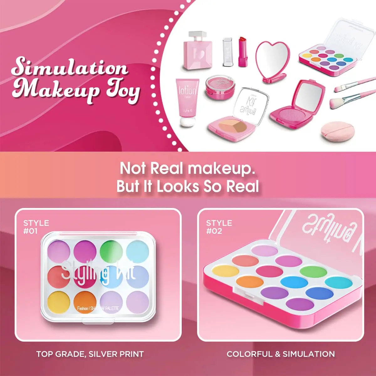 EPT Girls Favor Pink Pretend Play Preschool Simulation Make up Cosmetic Set Beauty Fashion Makeup Kit Toy for Kids