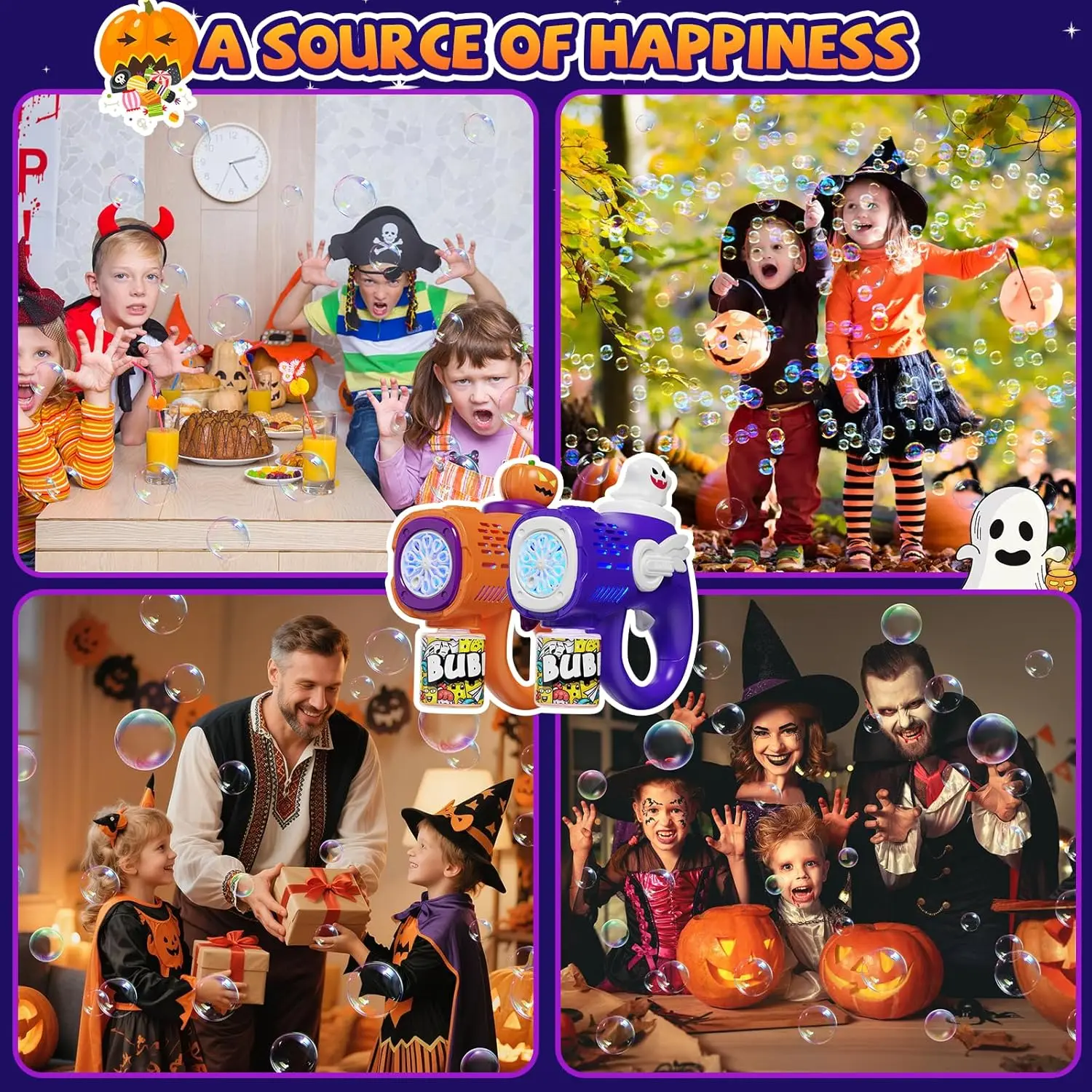 EPT New Automatic Bubble Maker Blaster Toys with LED Lights Bubble Machine for Kids Halloween Bubble Gun