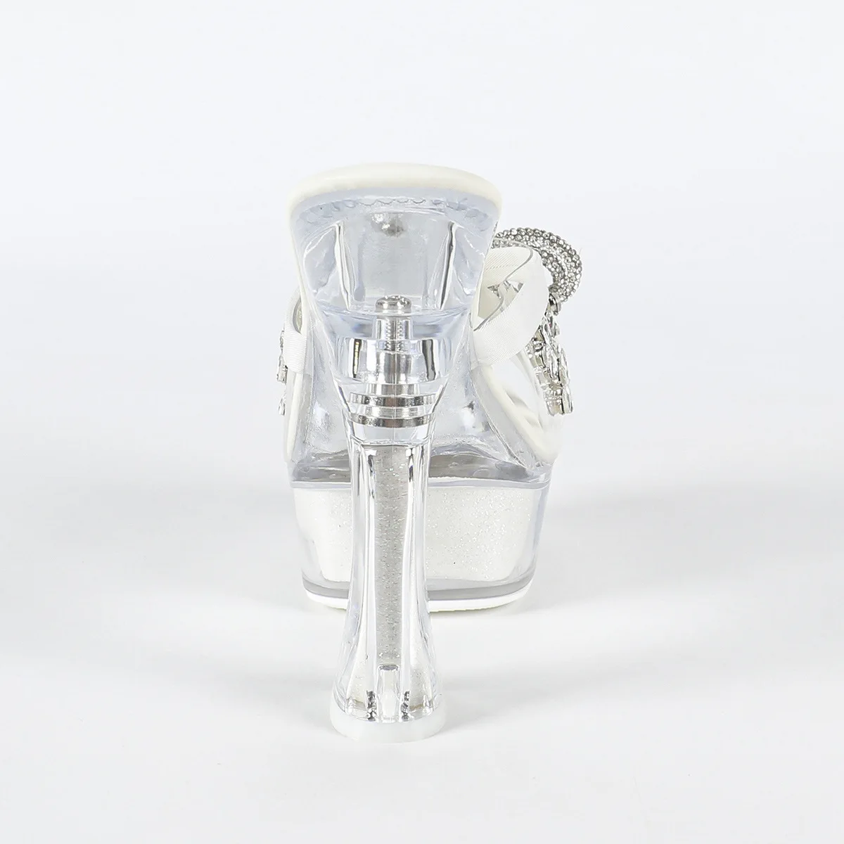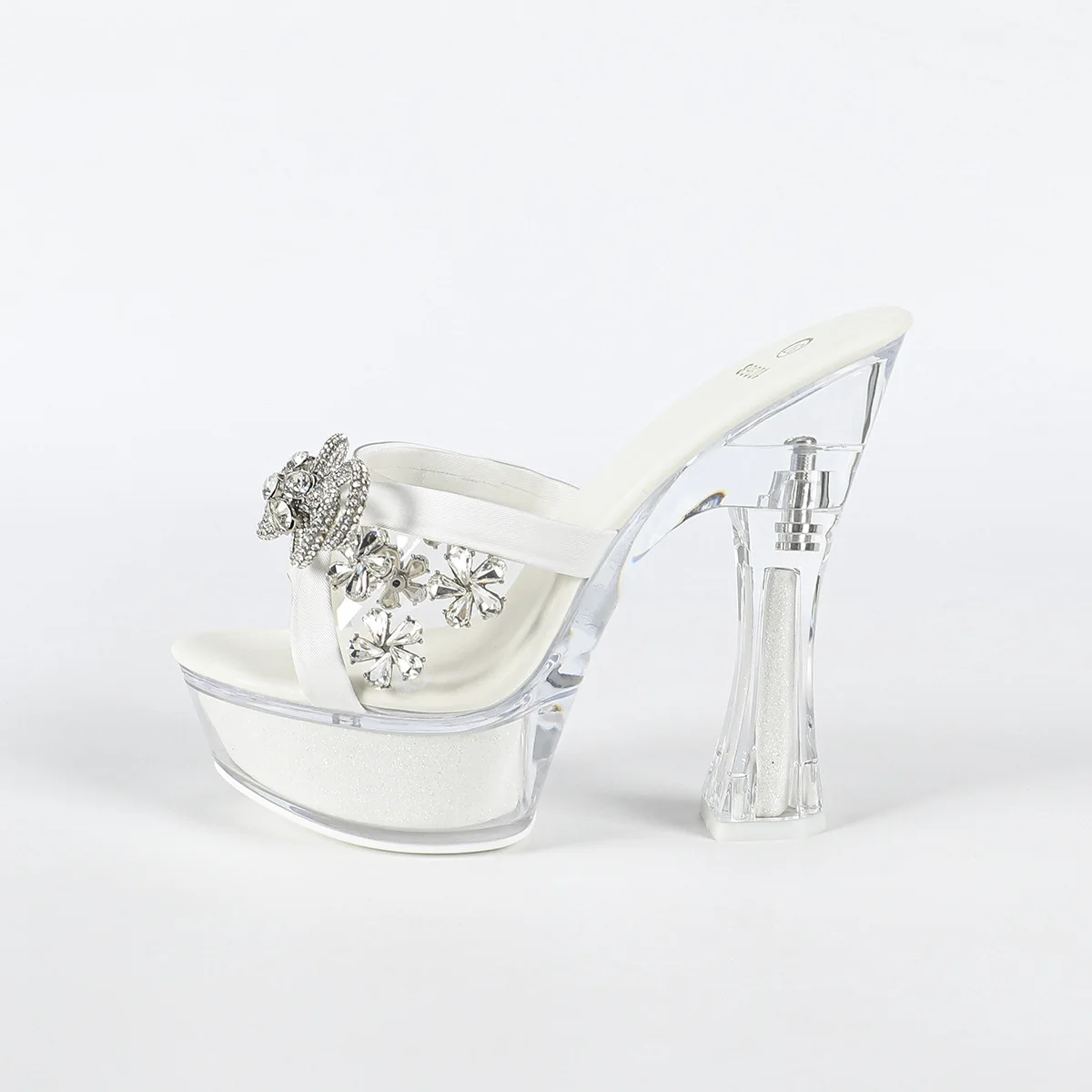 14cm Thick Heel Girl's Pole Dance Shoes Rhinestone Party Nightclub Clear Crystal Slippers Sandal Women's Dance Shoes Black/White