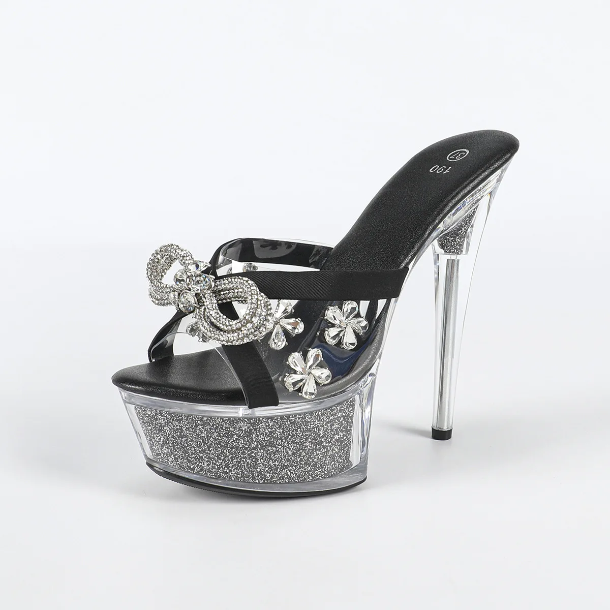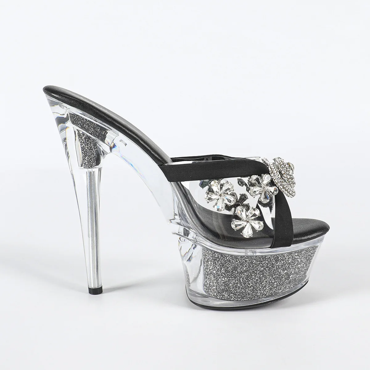 15cm High Heels Girl's Pole Dance Shoes Rhinestone Party Shoes for Women Stripper Heels Women's Dance Shoes Black/White