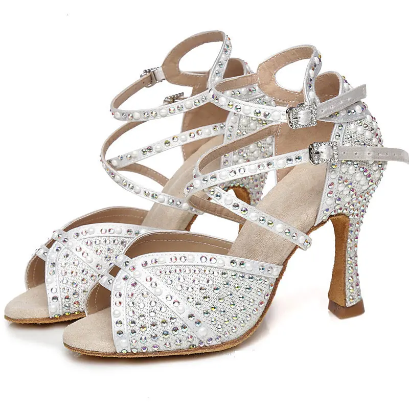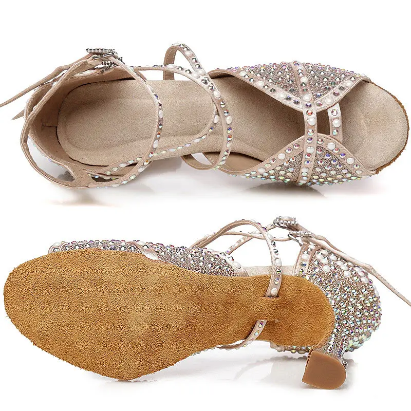 Customized Classic Latin Dance Shoes for Women New Woman Latin Shoes with Rhinestone Salsa Dance Shoes