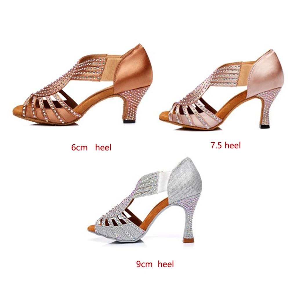 Rhinestone Latin Dance Shoes Women/Ladies Ballroom Salsa Dancing Shoes Soft Soles Party/Wedding Dance Sandals High Heels