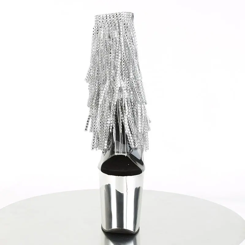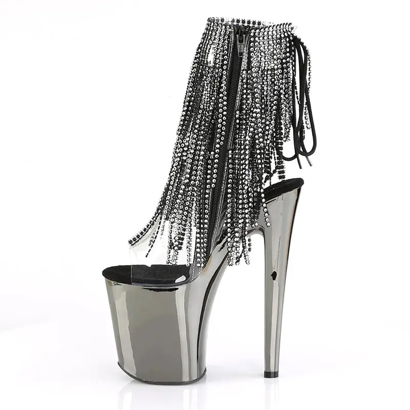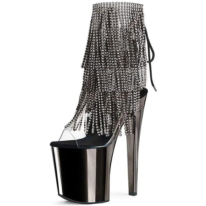 Sexy Tassel Women Pole Dance Shoes Ankle Boots 20cm Super High Heel Platform Ladies Strippers Boots