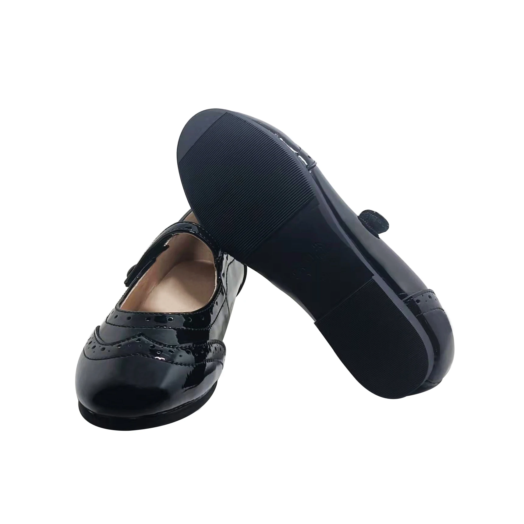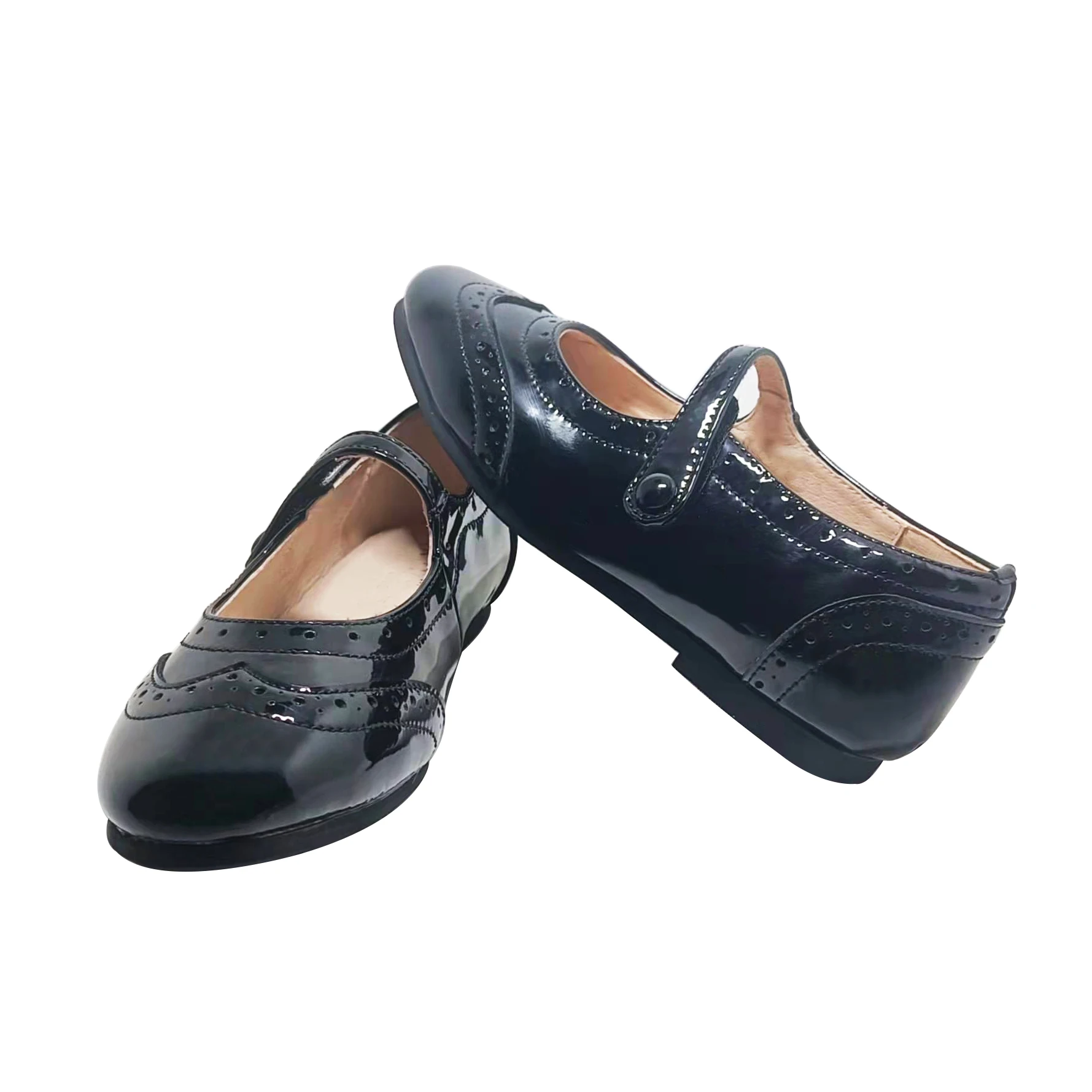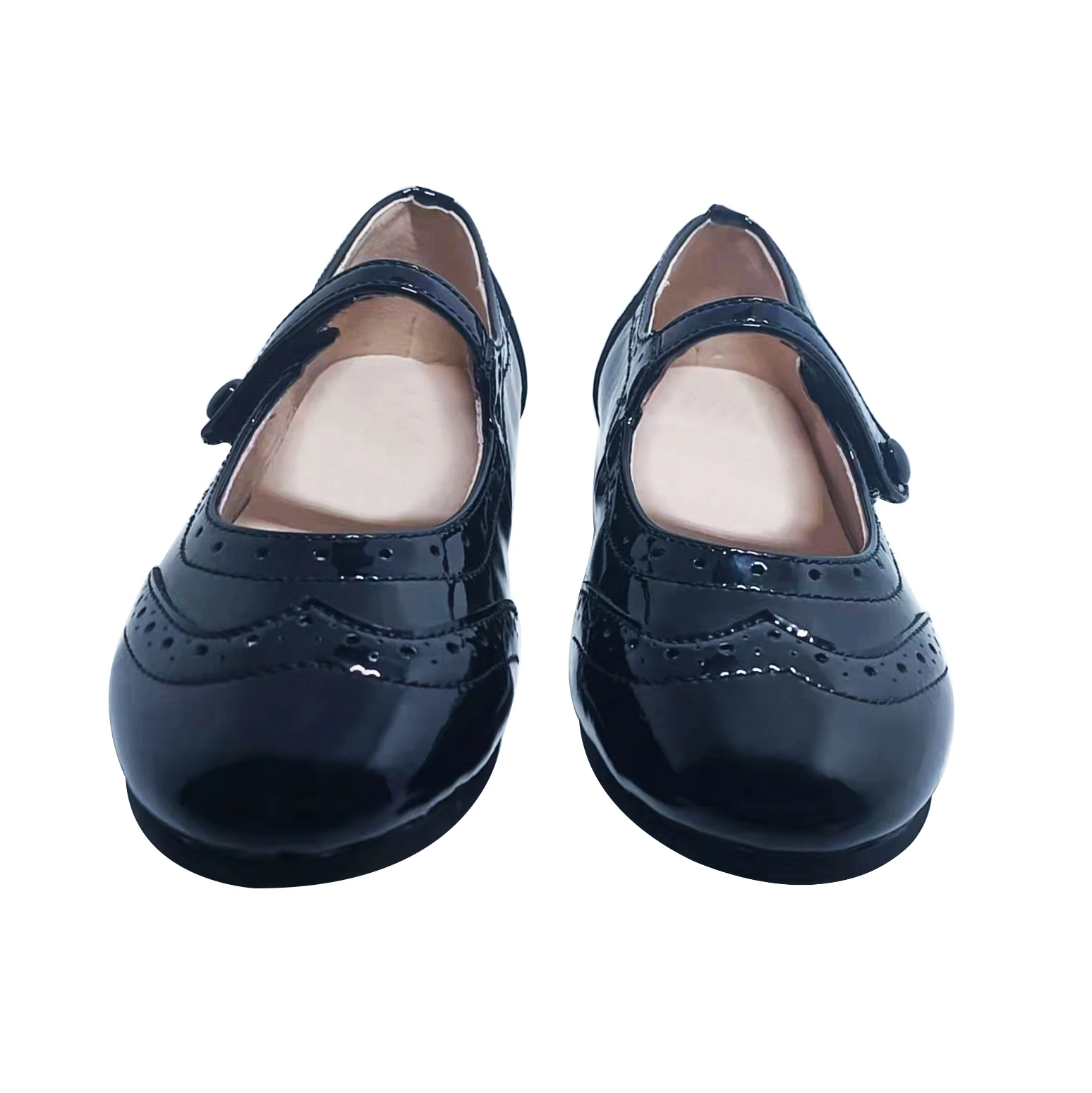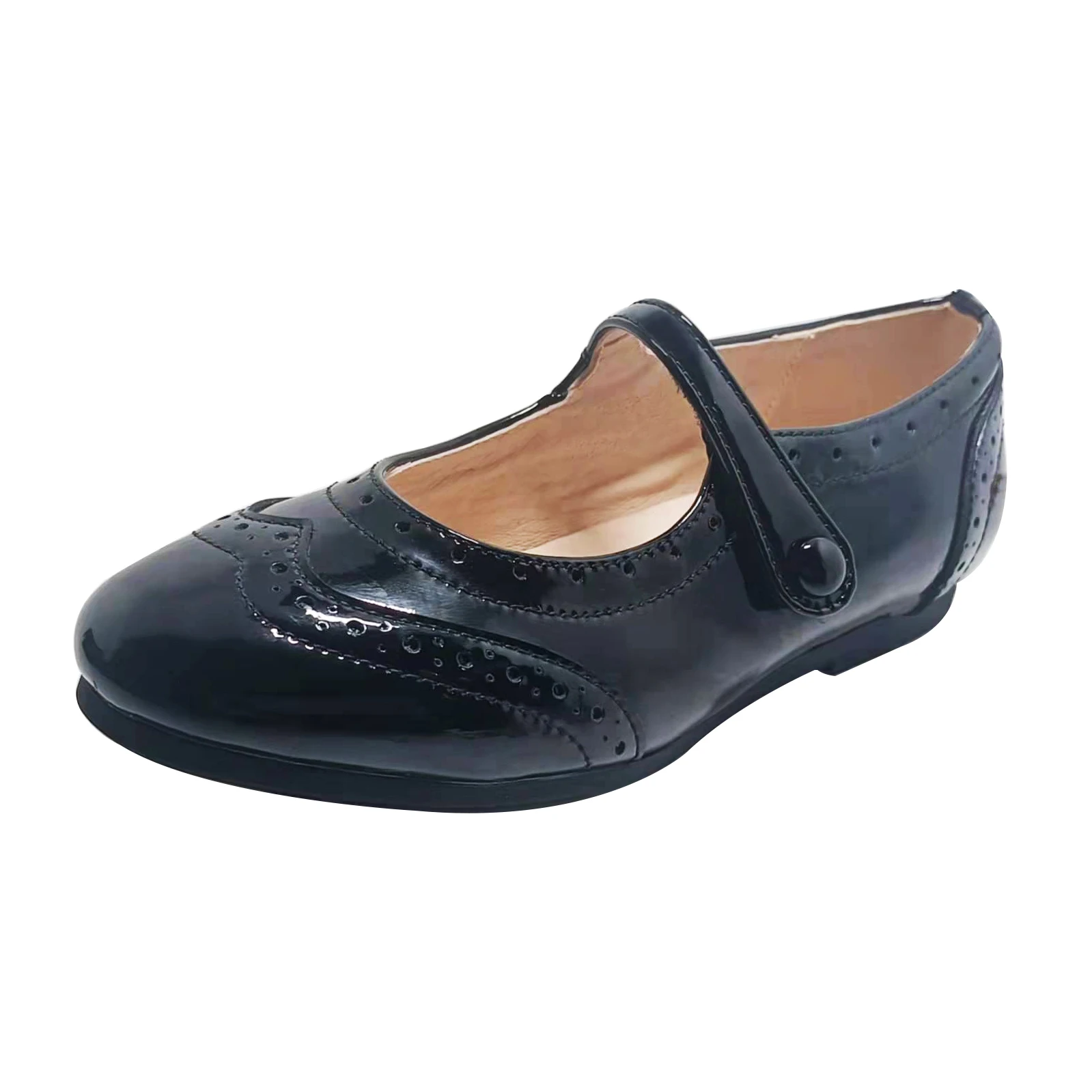 Factory Customized Children School Shoes Mary Jane Dressing Flat Black Cow Leather Shoes for Girls
