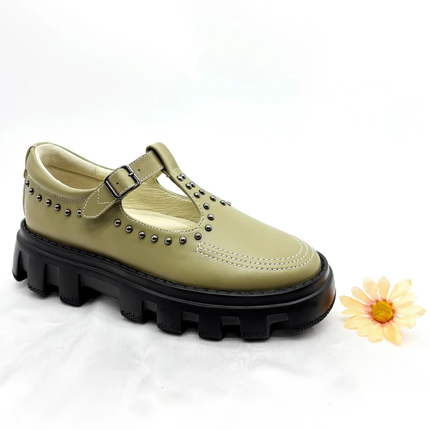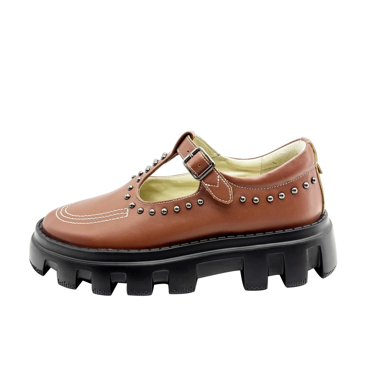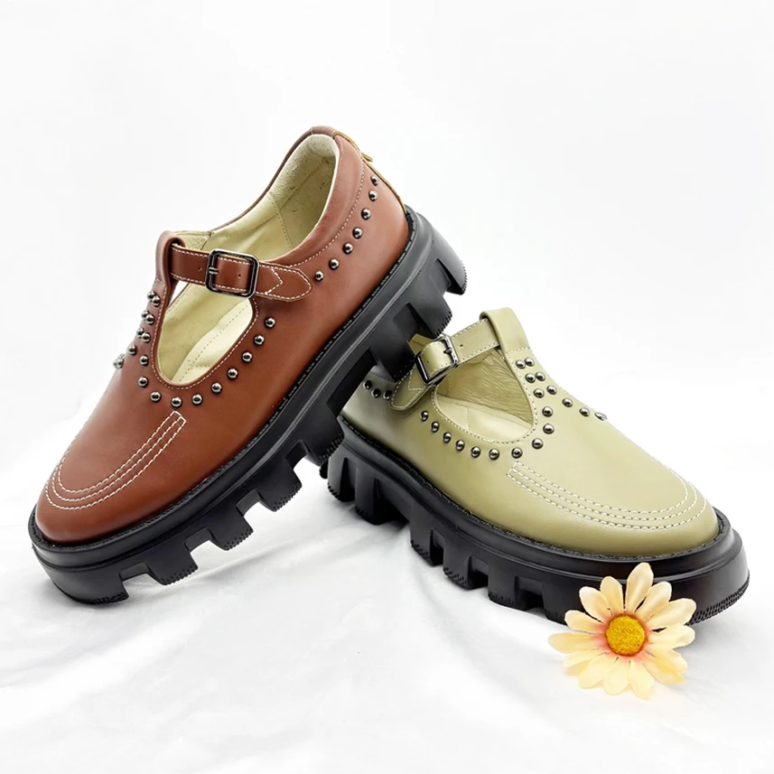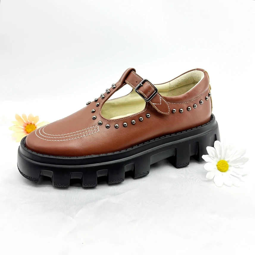 Classic Height Increasing 100% Genuine Leather Mary Jane for Women Fashion Trend Hard-Wearing Anti-Slip for Summer Spring