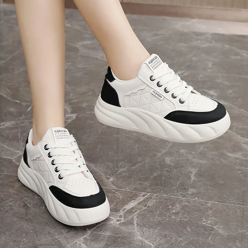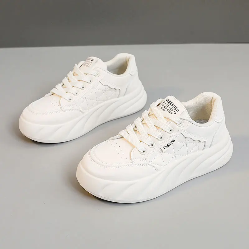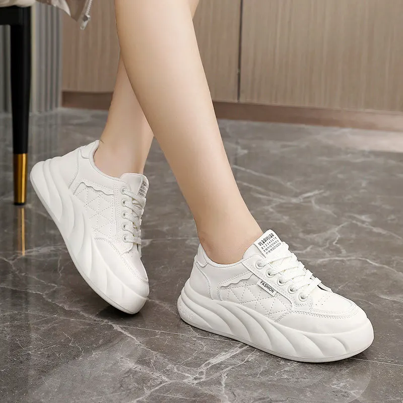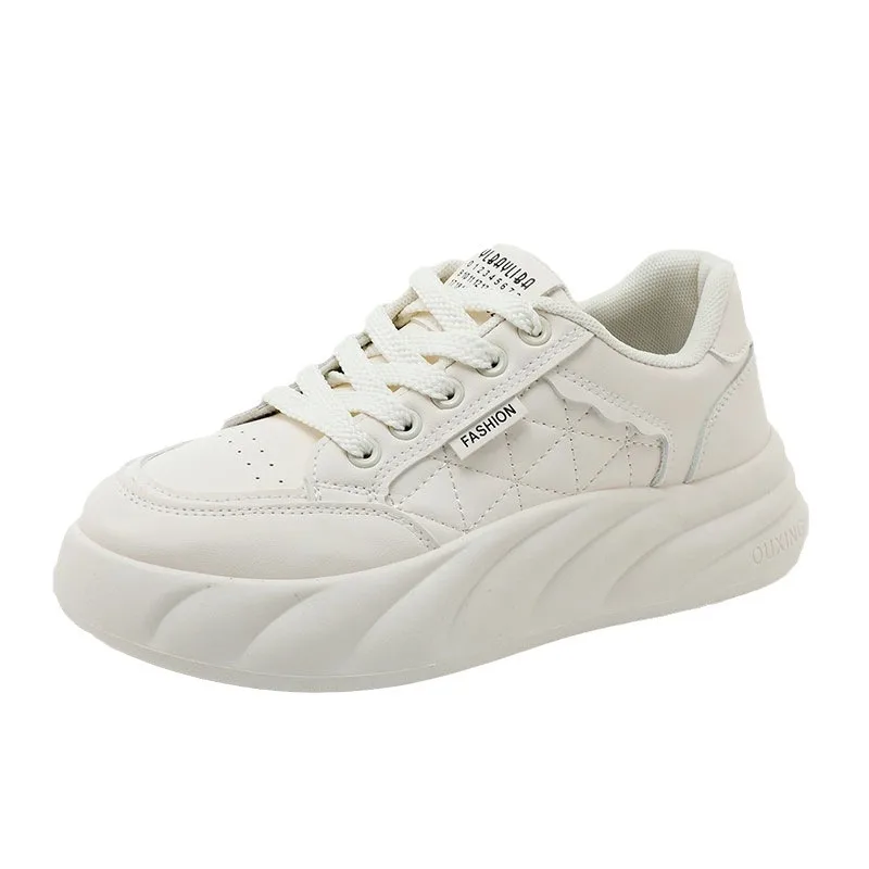 KT2807 New Breathable White Sports Shoes for Women Trendy Thick Soled Youth Board Shoes Soft Flexible Features for Spring Autumn