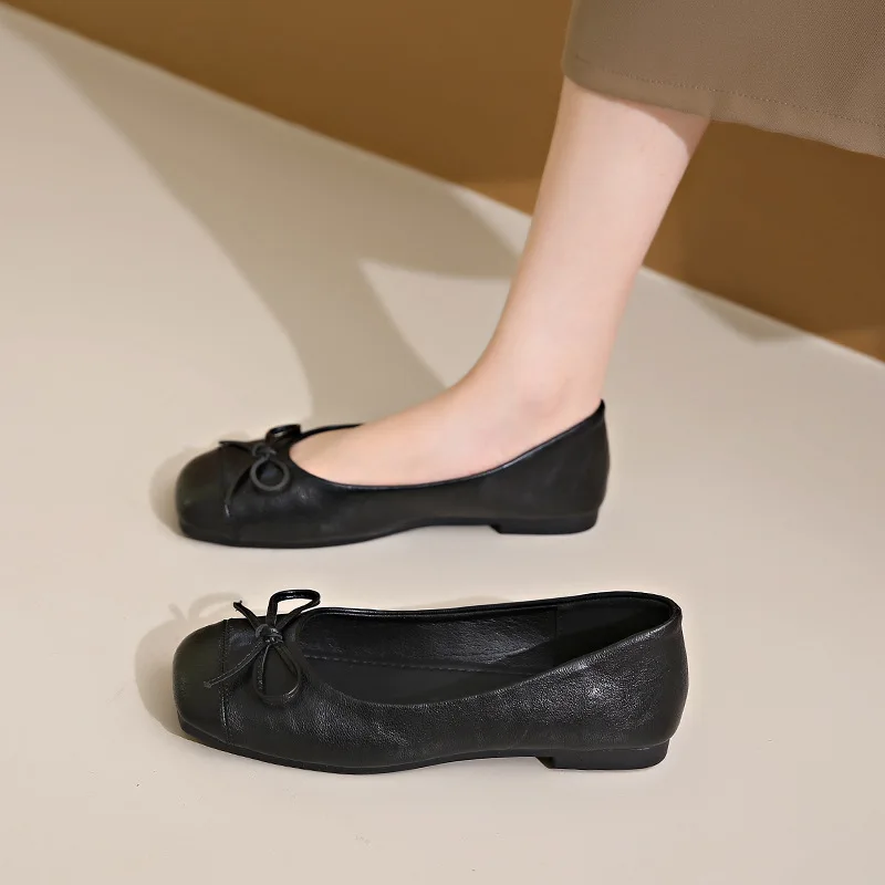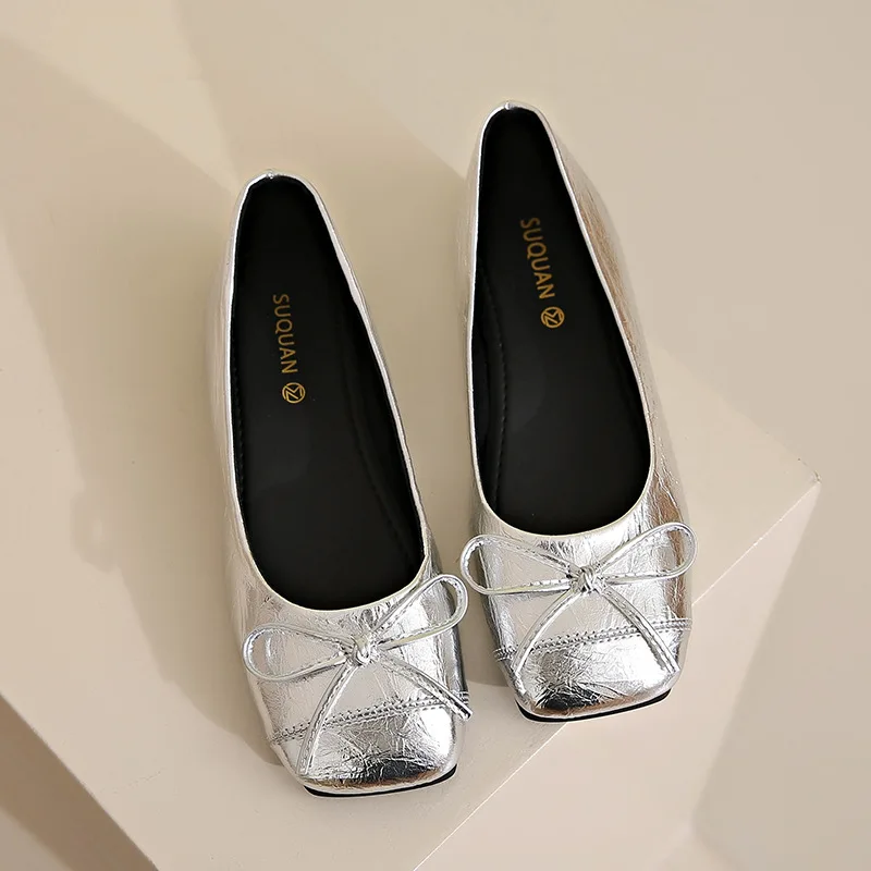 M105 Elegant Single Flats Ballet Shoes for Women Comfortable Slip-On Walking Shoes with Bowknot for Summer and Spring