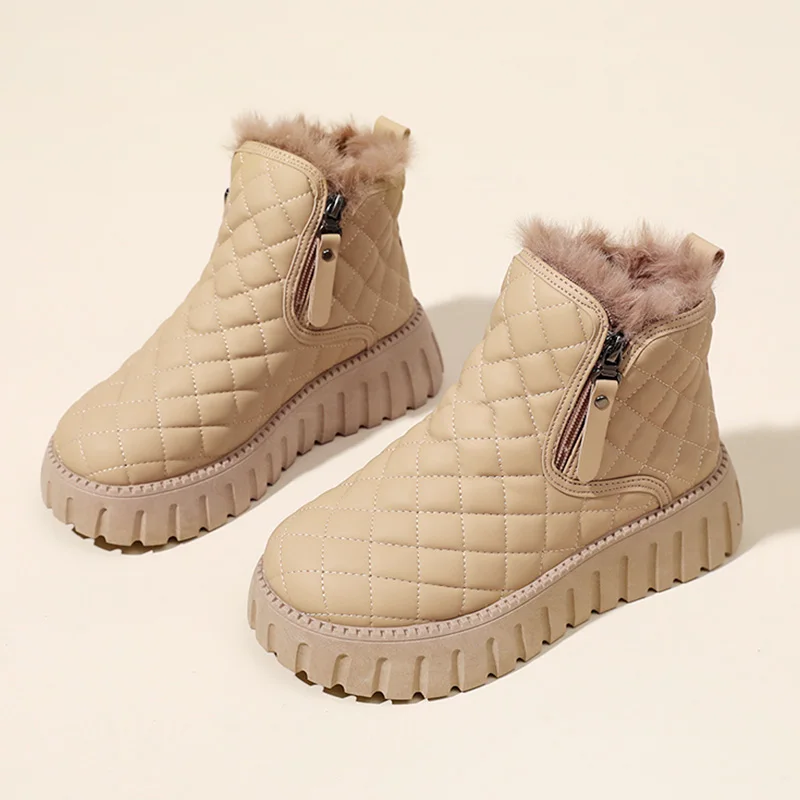 ZY12296 Winter Short Casual Boots New Plush Waterproof Increased Thick Soled Snow Cotton Lace-Up Closure Flat Upper Lycra