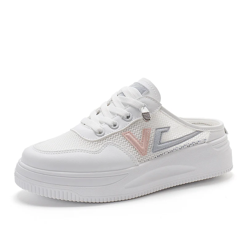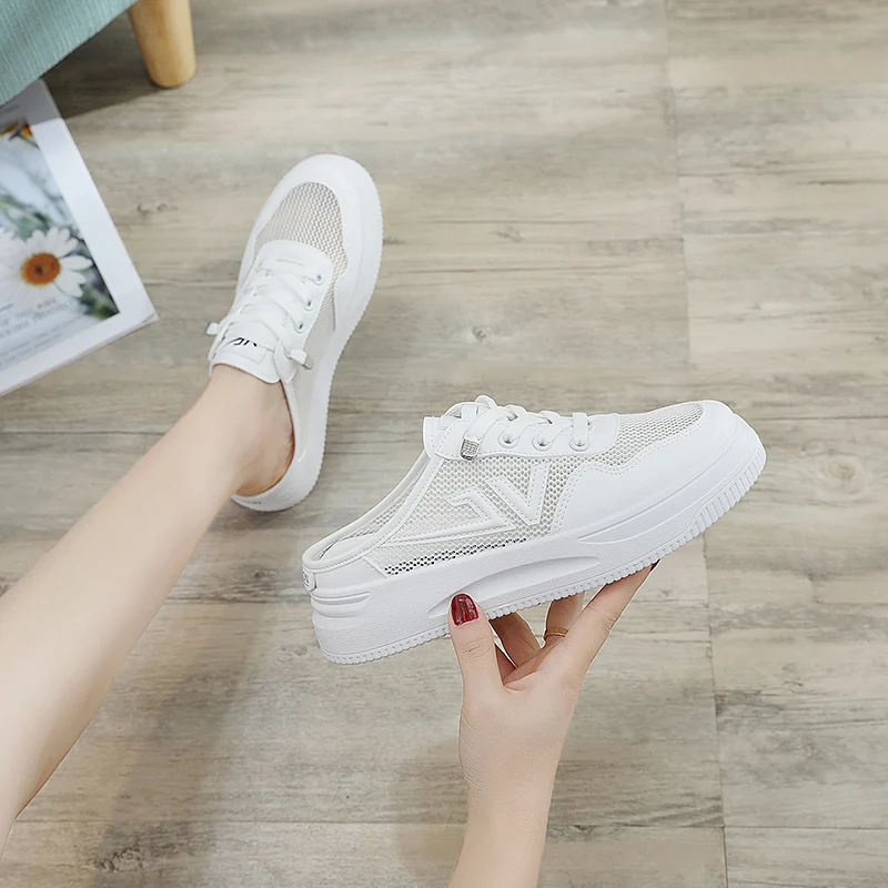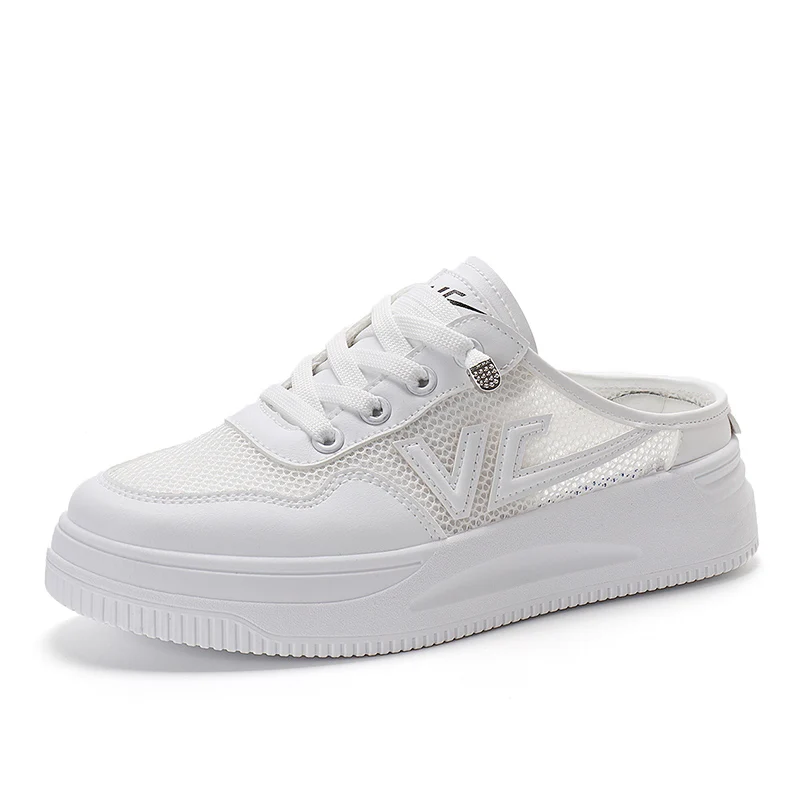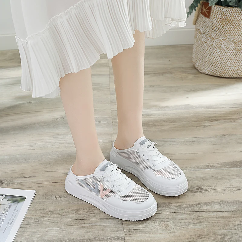 Made in China Women's Summer Mesh Breathable Lazy Flat Shoes One-Pedal Half-Drag Without Heels for Spring & Autumn