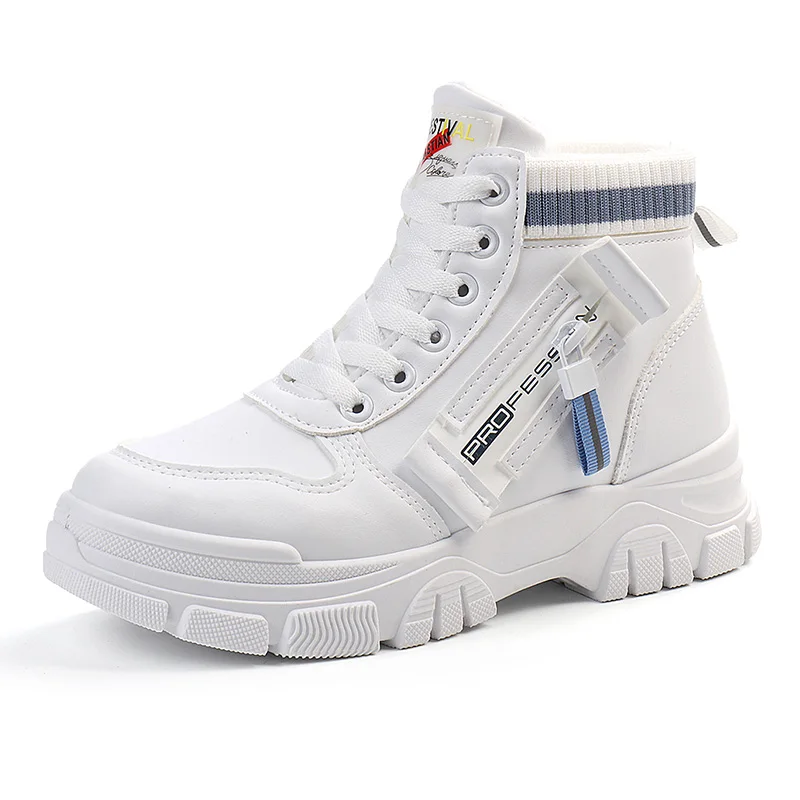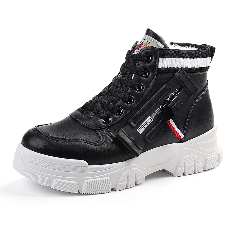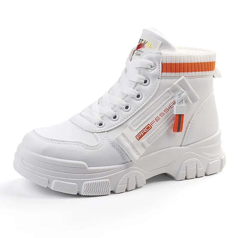 Q3521 Women's Trendy High-Top Plush Casual Shoes Warm Platform Sports Design with Flat and Thermal Features