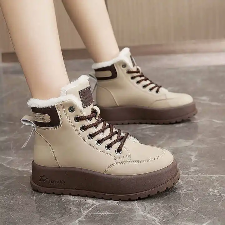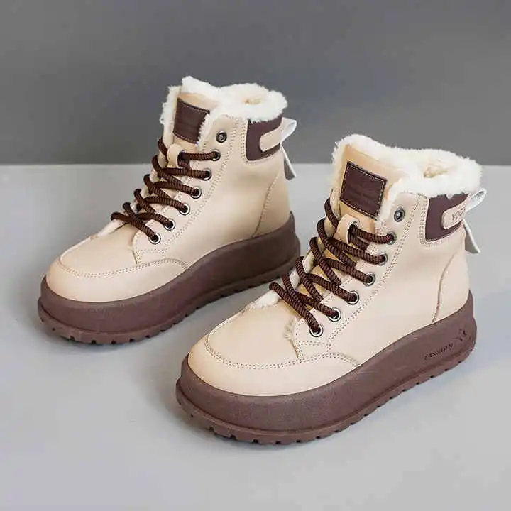 KT2810 Women's Autumn Winter Warm Snow Boots Breathable and Waterproof Lace-Up Casual Shoes with Plush Design