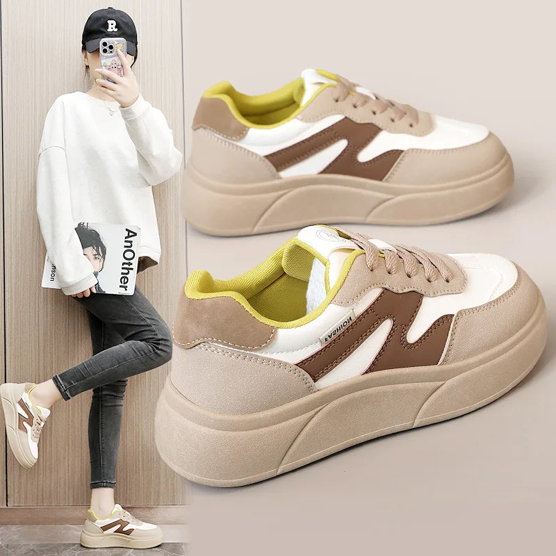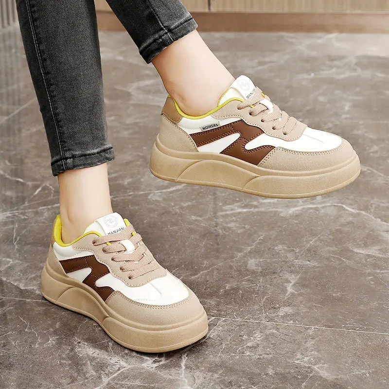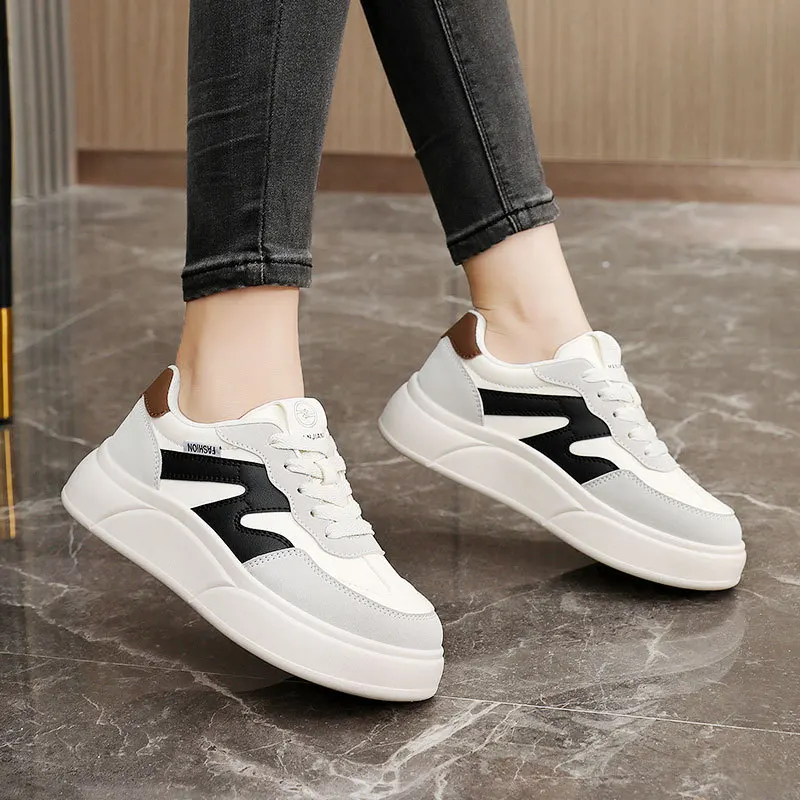 XQW20 Height Increasing Thick Sole Breathable Splicing Casual Board Shoes Trendy Korean Version Sports Shoes