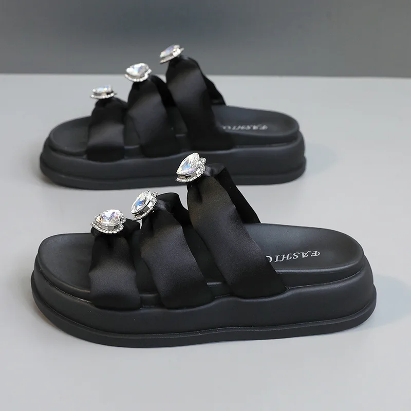 A310 Summer Korean New Fashion Beach Ladies Rubber Slippers Outdoor Platform Rhinestone Slippers
