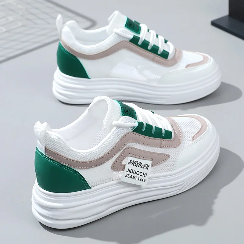 W1792 Women's High Rise Loafers Breathable Mesh Sports Shoes with Thick Sole for Spring/Summer Versatile Casual Look
