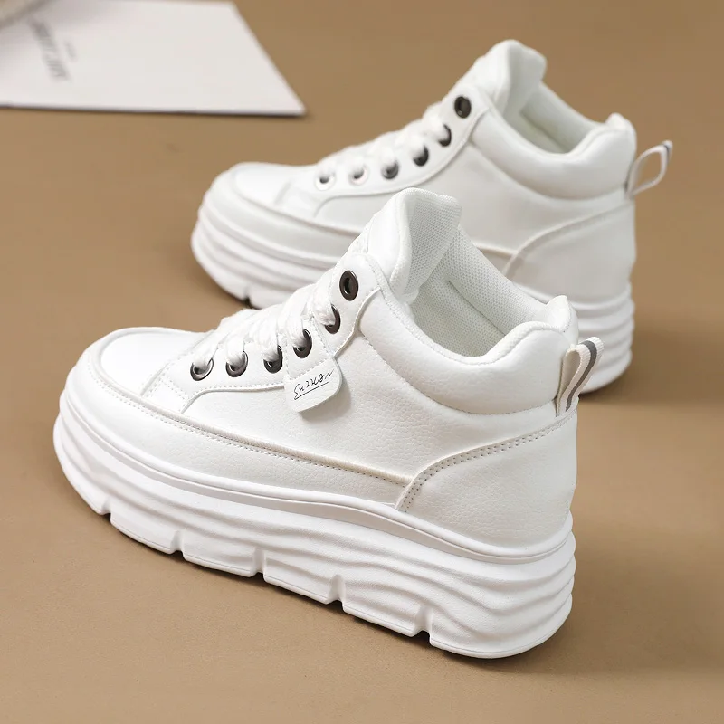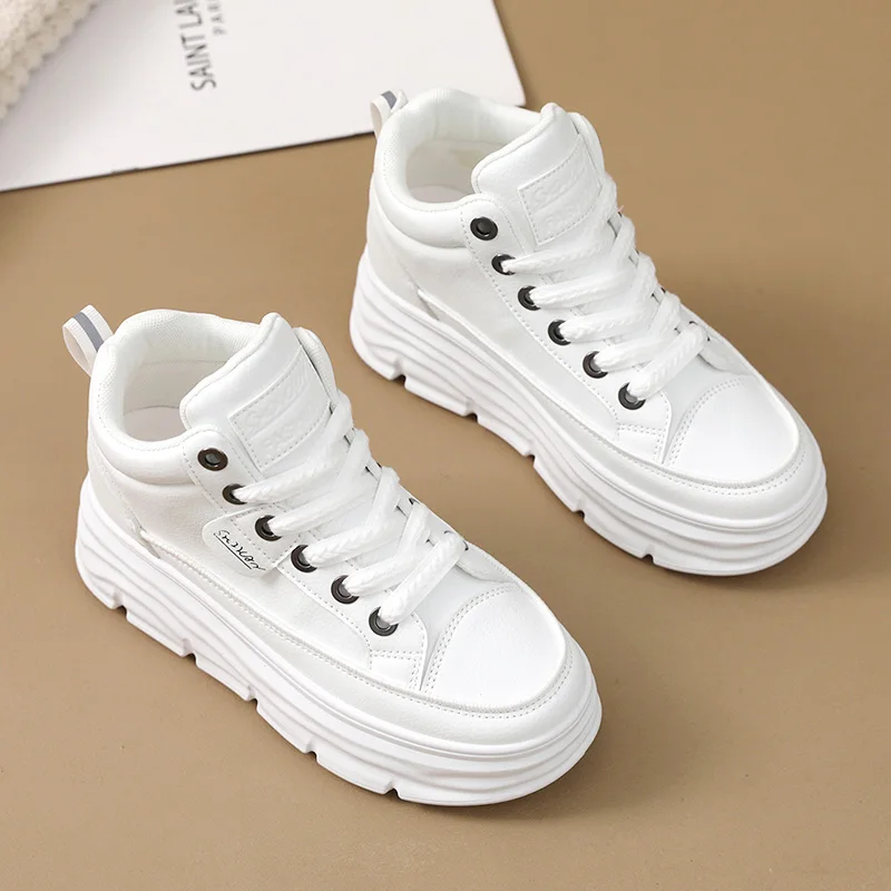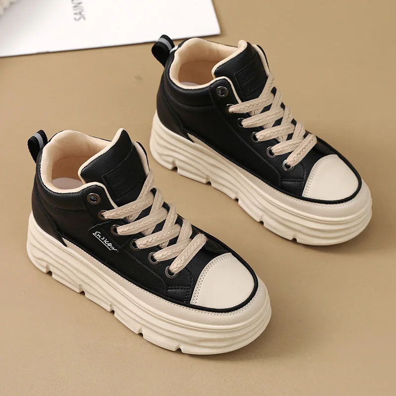 New Leisure 2023 Autumn Daily Artificial Leather Inner Heightening Women's Shoes Thick Sole Student Simple Skateboarding Shoes
