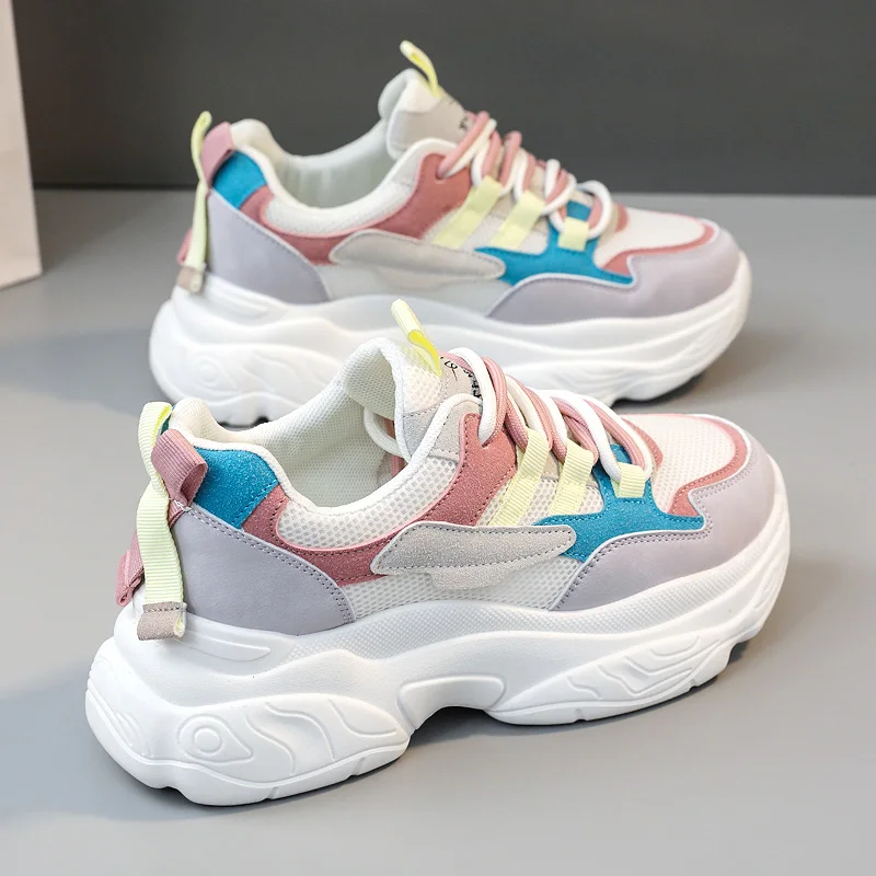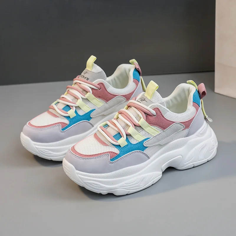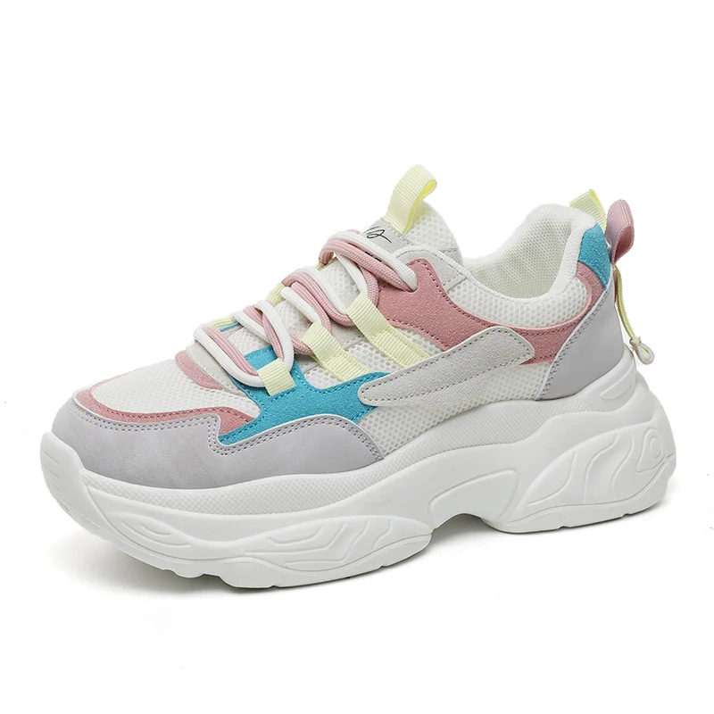 K5010 New Colored Women's Shoes Autumn Mesh Breathable Increase Thick Sole Versatile Casual Sports Shoes