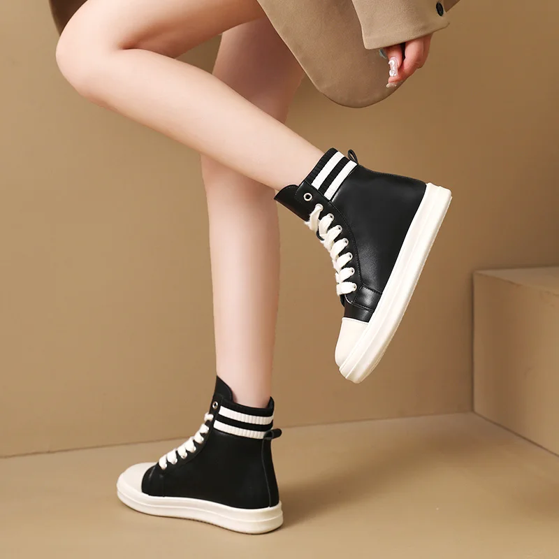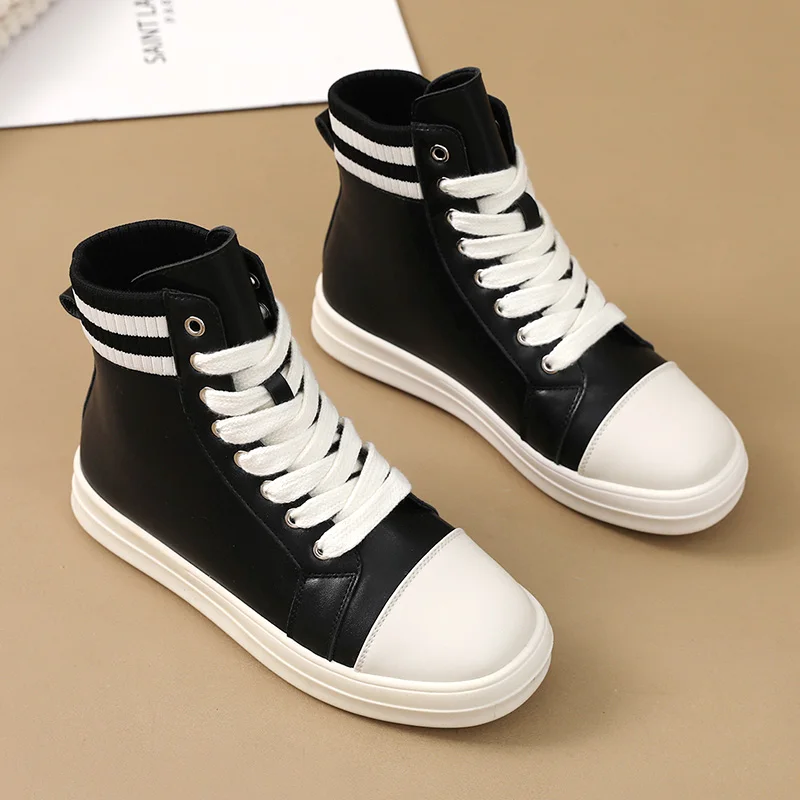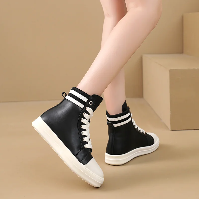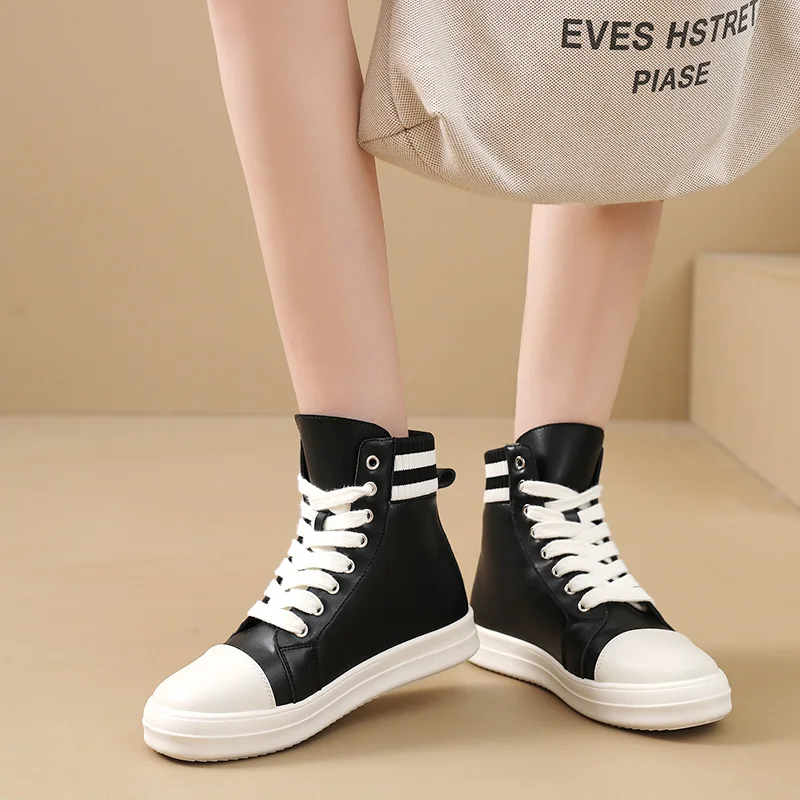 Made in China New Spring and Autumn Flat Black Knit Shoes Classic PU Casual Zip Lace-up Women's Shoes