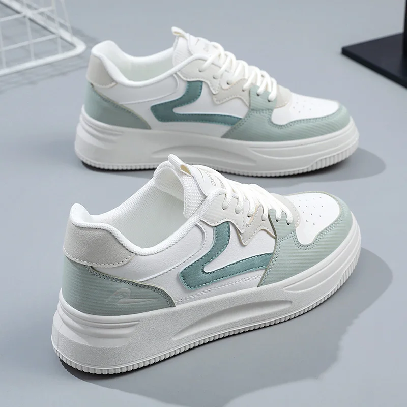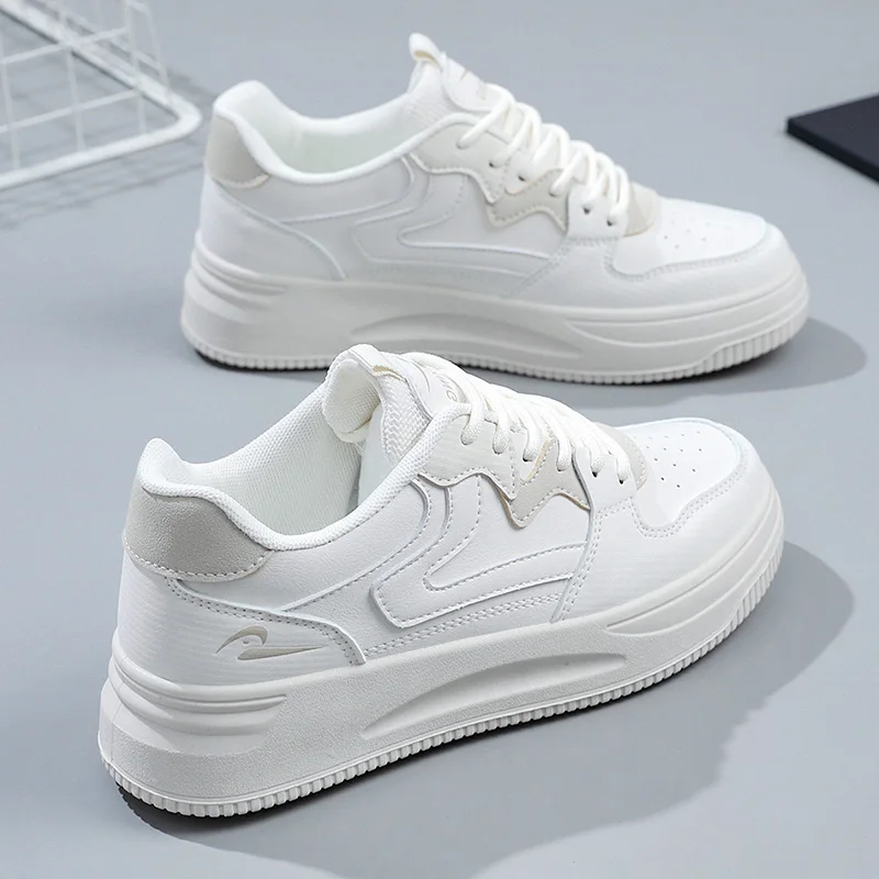 Q1665 Autumn New Women's Versatile Soft Sole Thick Bottom Lacing Board Shoes Comfortable Low Top Women's Flat Shoes