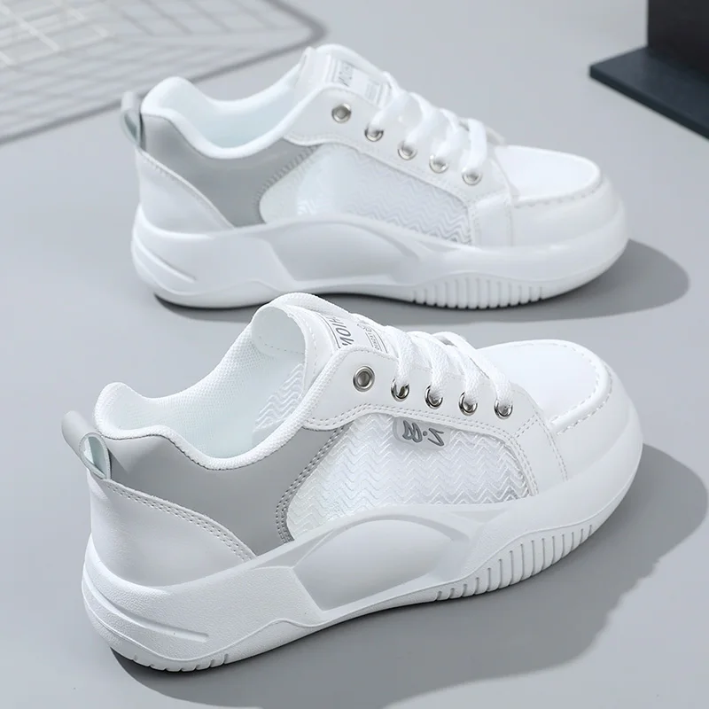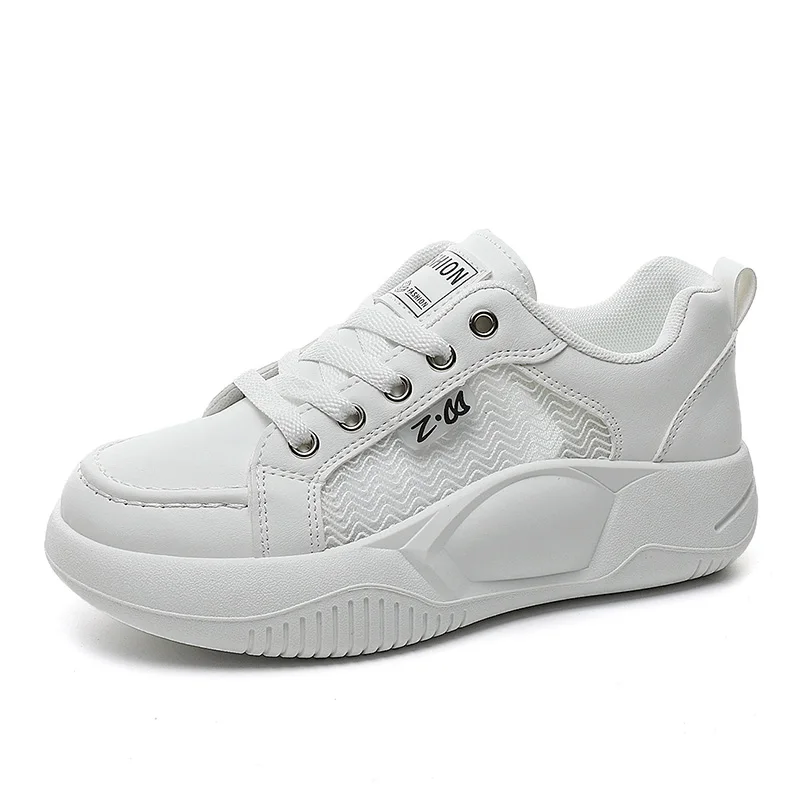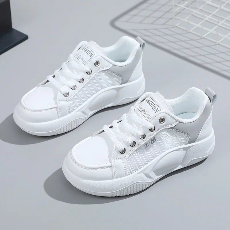 K8619 Wholesale Spring and Summer Thick Sole Elevated Women's Shoes Breathable Colored Mesh Board Shoes