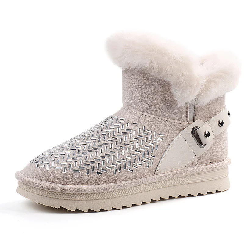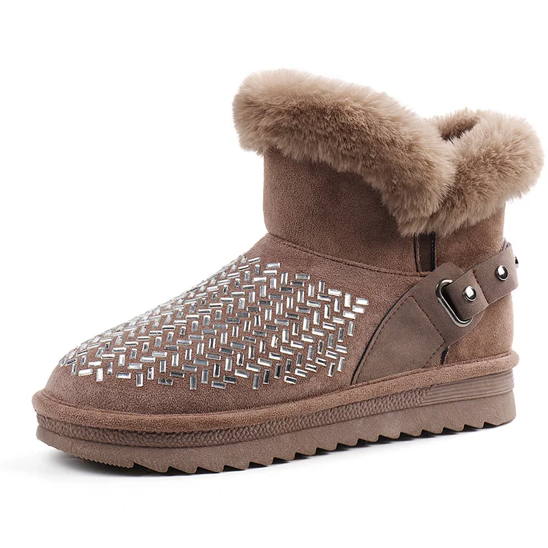 RV102 New Snow Boots Women's Short Boots Winter Fur Low Barrel Short Boots Thickened Cotton Shoes