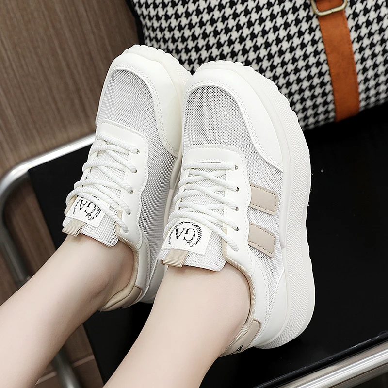 G2605 New Mesh Breathable Women's Shoes Autumn Heightened Thick-soled Campus Student Casual Sneakers