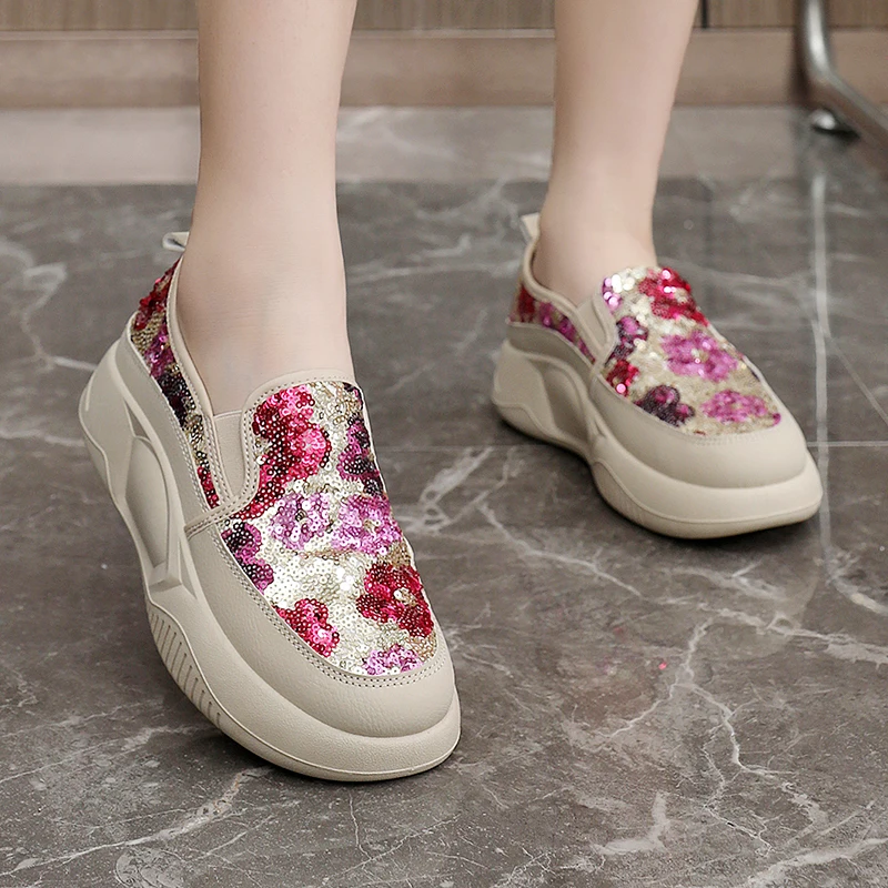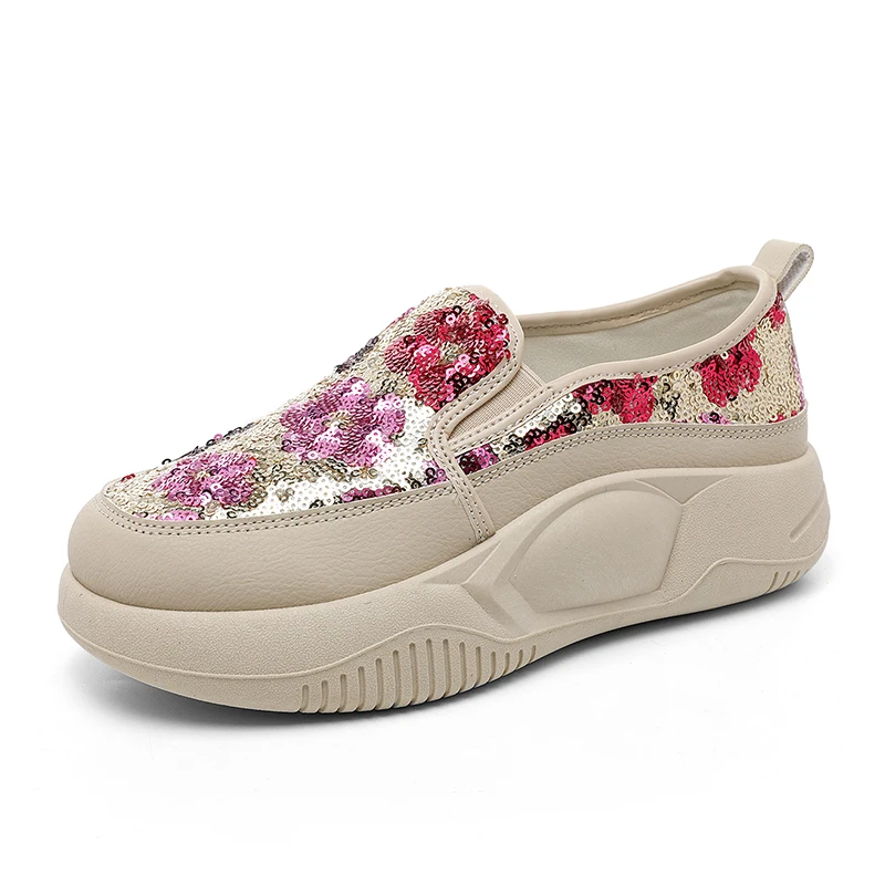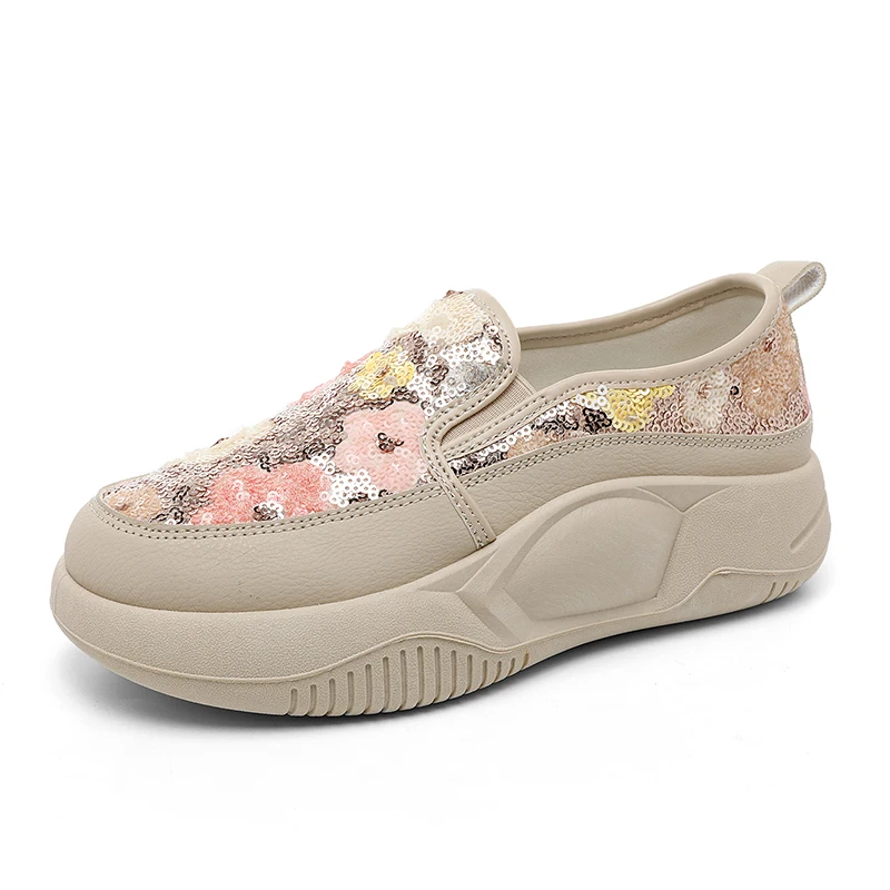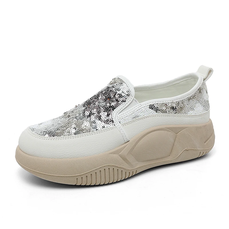 K8655 Spring New Lace up Breathable Little White Shoes Walking Style Sport Shoes for Woman Portable Thick Sole Shoes