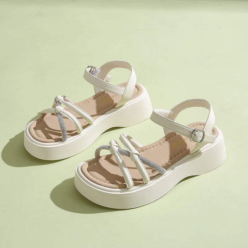 Women's Fashion Trend Summer Peep Toe Light Weight Sandals with Single Strap and Rhinestone