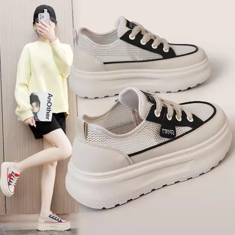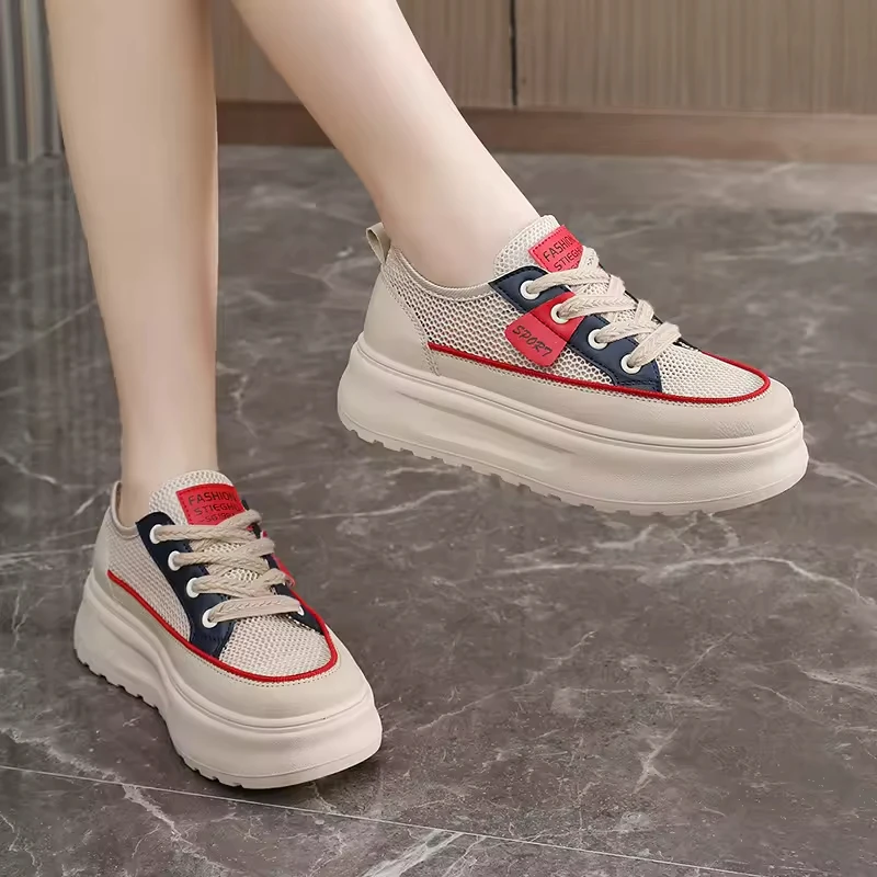Customized Increasing Thick Sole Breathable Patchwork Color Casual Shoes Spring and Autumn Casual Low Help Shoes for Women