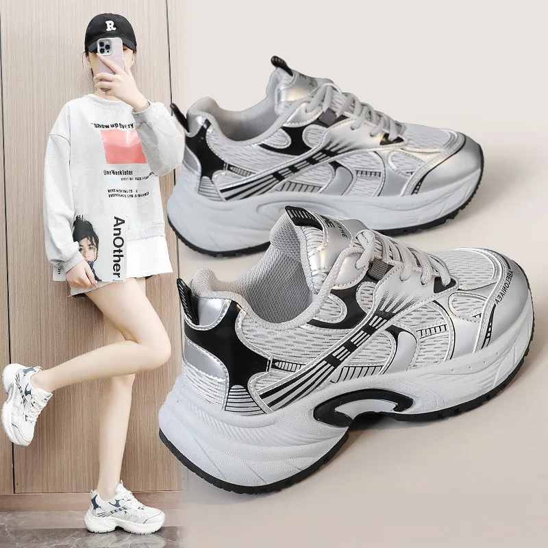 Customized Breathable Thick Soled Height Increasing Sports Shoes Casual Versatile Anti Slip Women's Sports Shoes