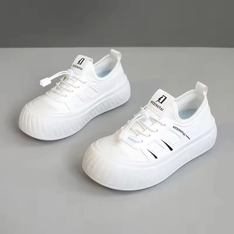 Xt172 Customized Women's Trendy White Sneakers Casual Flat Platform Slip-On Shoes Breathable Anti-Slip Sneakers