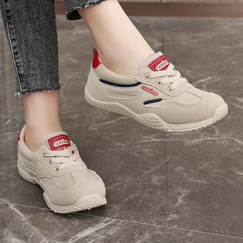 K1510 Ladies Sneakers Soft Bottom Non-slip Casual Shoes with Lace-Up Closure Breathable for Spring and Autumn