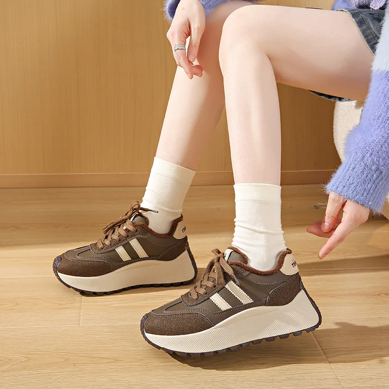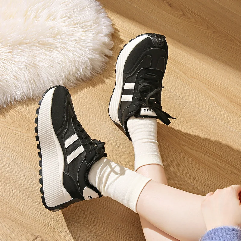 BN022-1 Women's Casual Sneakers Hot Selling Thick Soled Anti-Slip Shoes for Autumn/Winter Height Increase Breathable