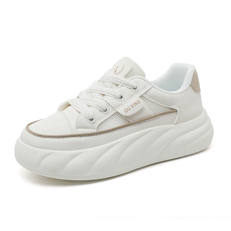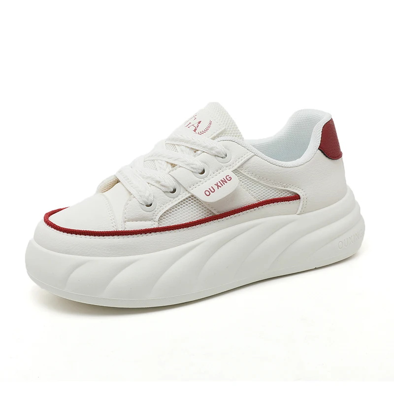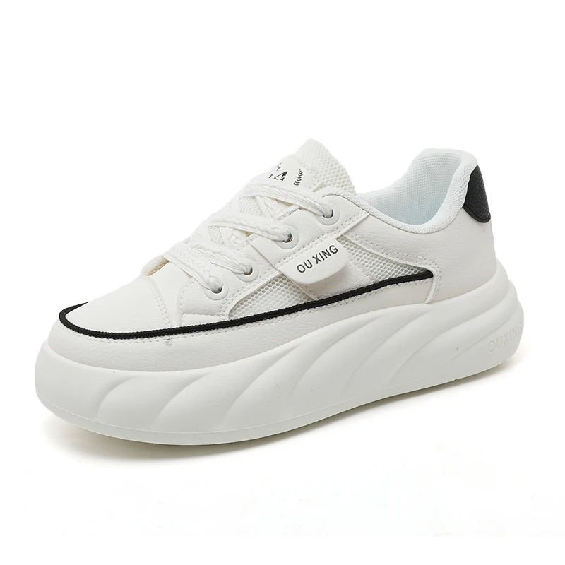 Women's Fashion Trend Flat Shoes with Thick Sole Heightening Mesh Breathable Lace-Up Closure for Autumn Summer and Spring
