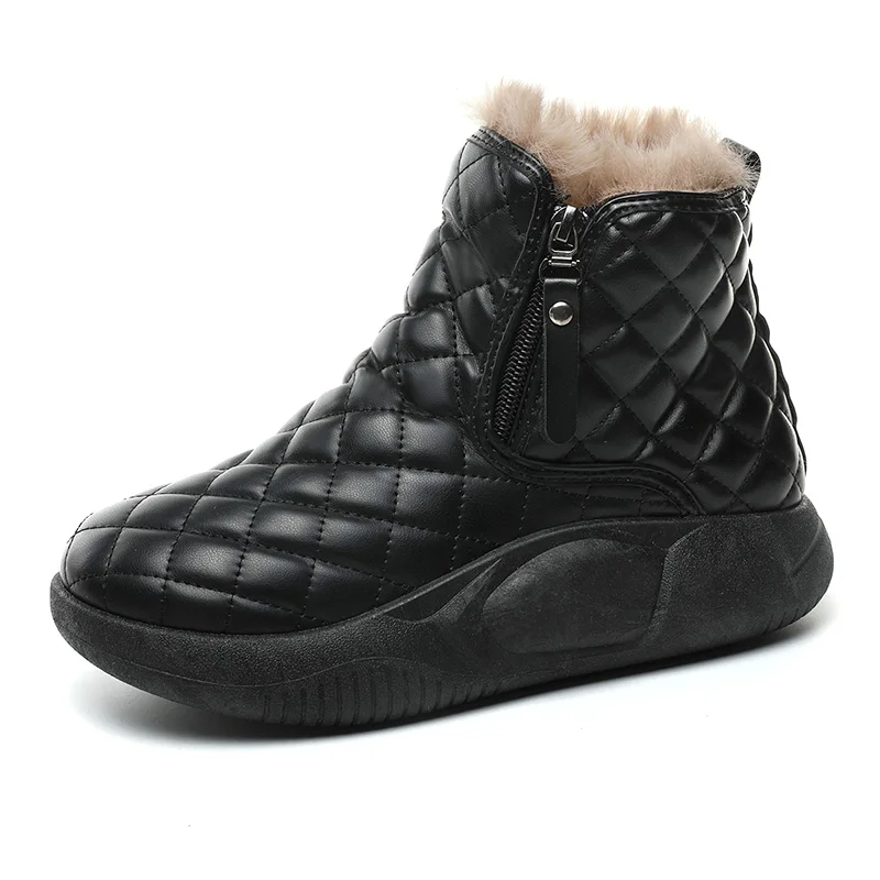 XQ5859 Women's New Comfortable Winter Snow Boots Waterproof Lace-Up Flat Bottom PVC Cotton Shoes Short Warm Design