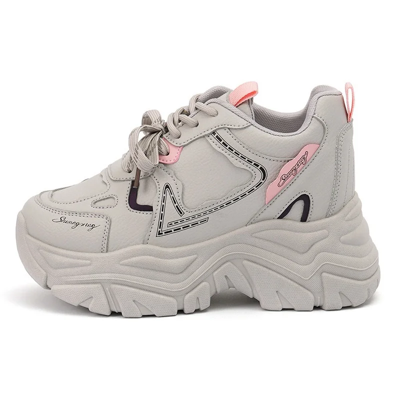 Zgsx-28003 PU Women's Casual Walking Shoes Breathable Women's Dad Shoes Women's Thick Soled Height Increasing Shoes