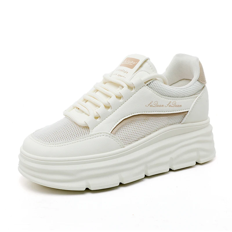 Wholesale W3656 Women's Breathable Mesh Sports Shoes for Autumn Thick-Soled Versatile Inner Height-Increasing for Leisure Summer