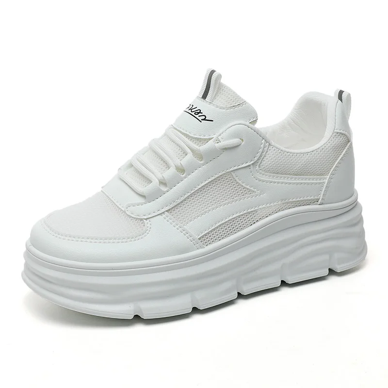W3603 New High Rise Women's Board Shoes Summer Mesh Breathable Sports Shoes Thick Sole Versatile Casual Shoes