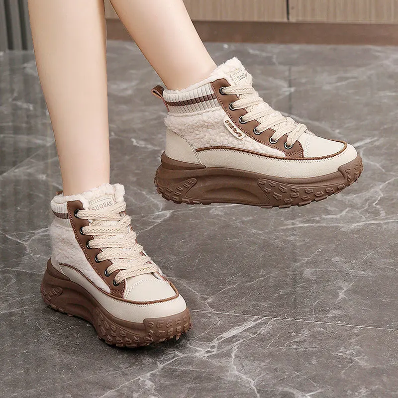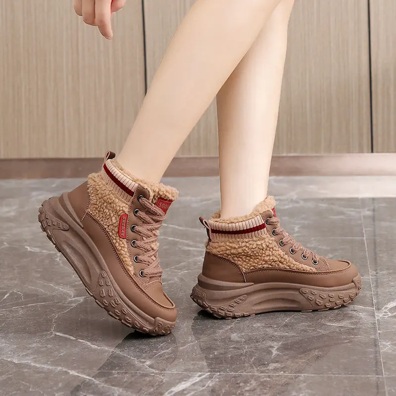 K6720 Winter Fashionable Trend Casual Shoes Thick Sole Plush Anti-Slippery Light Weight Warm Shoes