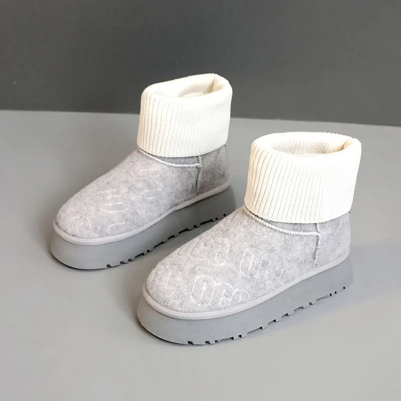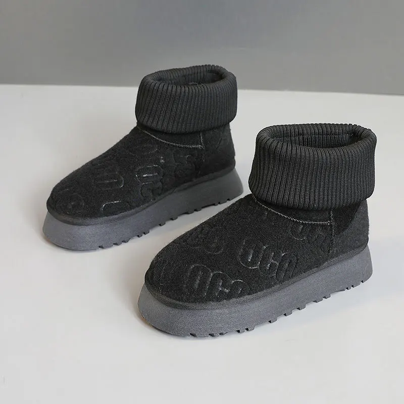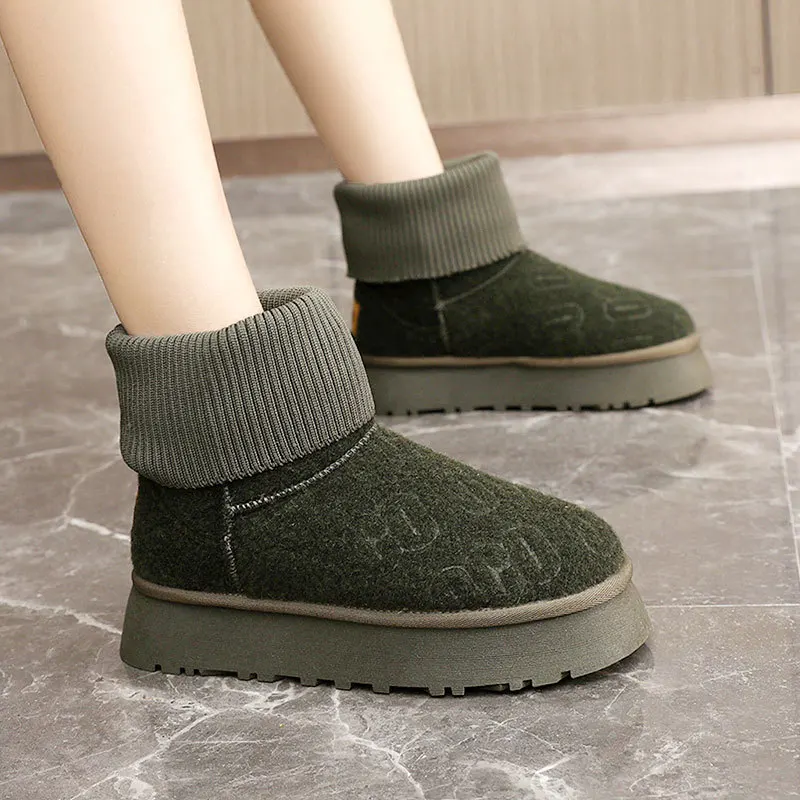 BR9981 Women's Winter Warm Ankle Boots Comfortable Slip-On Breathable Solid Snow Boots for Winter