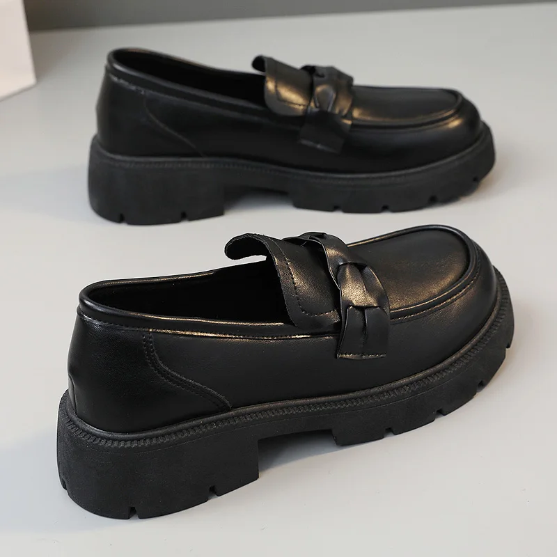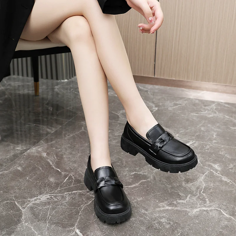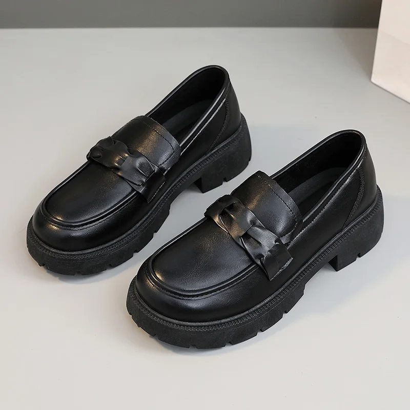 K1805 Summer New Women's Shoes Lefu Shoes Solid Color Flat Bottom Versatile Casual Leather Shoes