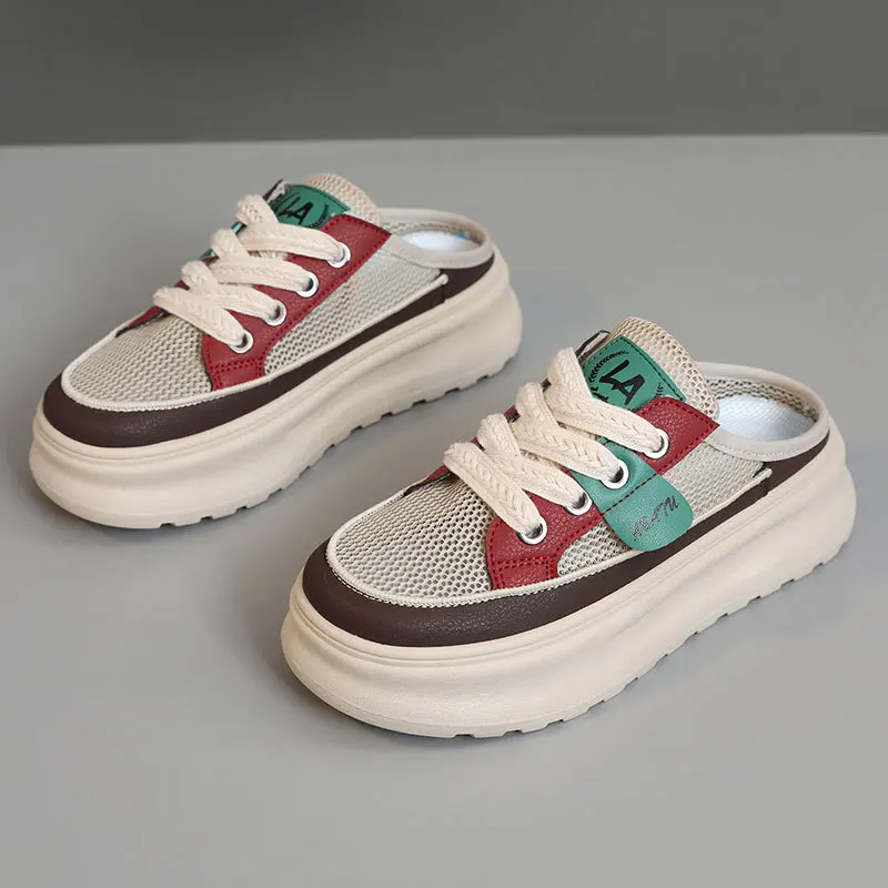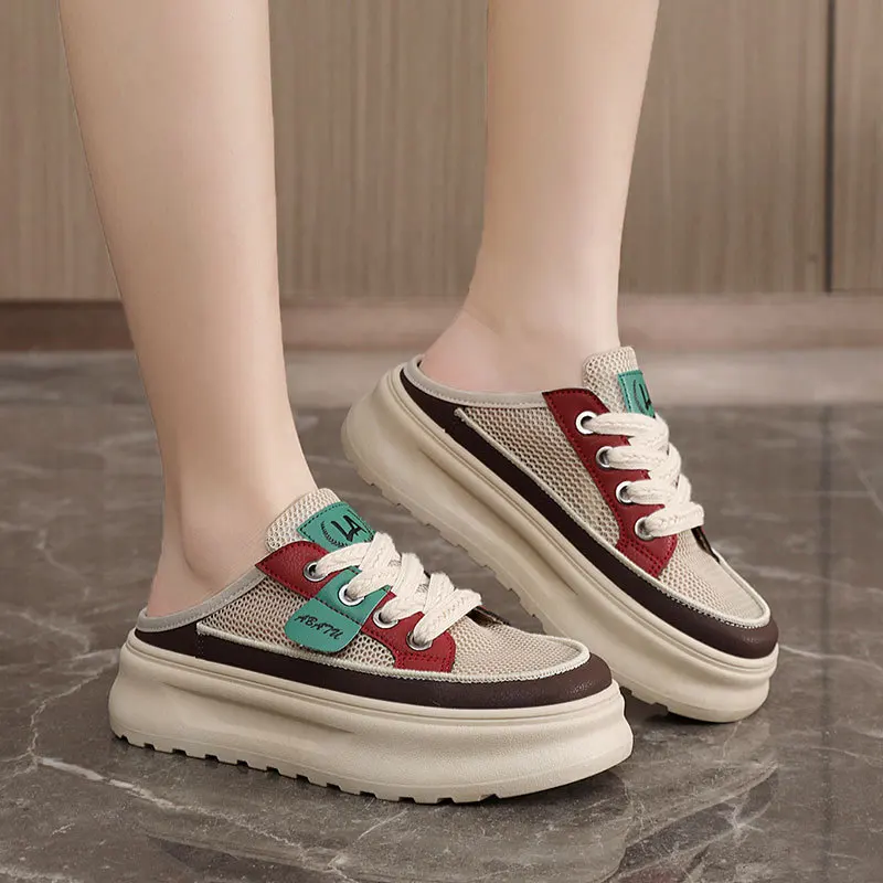 Customized Women's Casual Mesh Half-Drag Sandals Increasing Thick Soled Non-Slip Sandals Breathable Deodorization Sandals