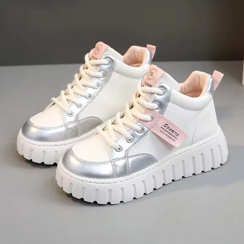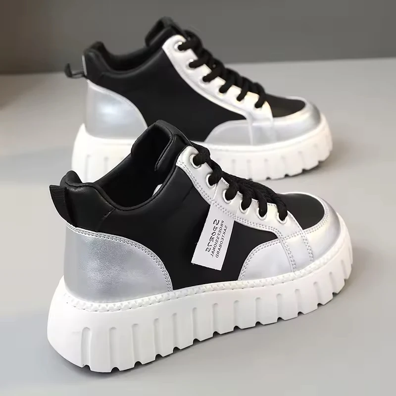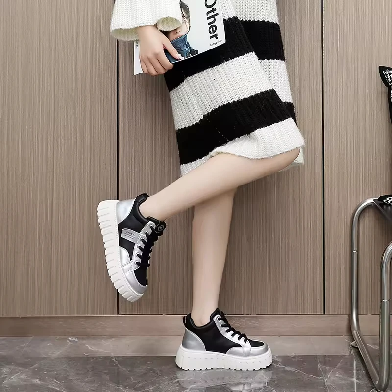 XQ290 New Pu Leather Casual Spring and Autumn Low-top Waterproof Net Red Heightened Biscuit Sole Women's Shoes