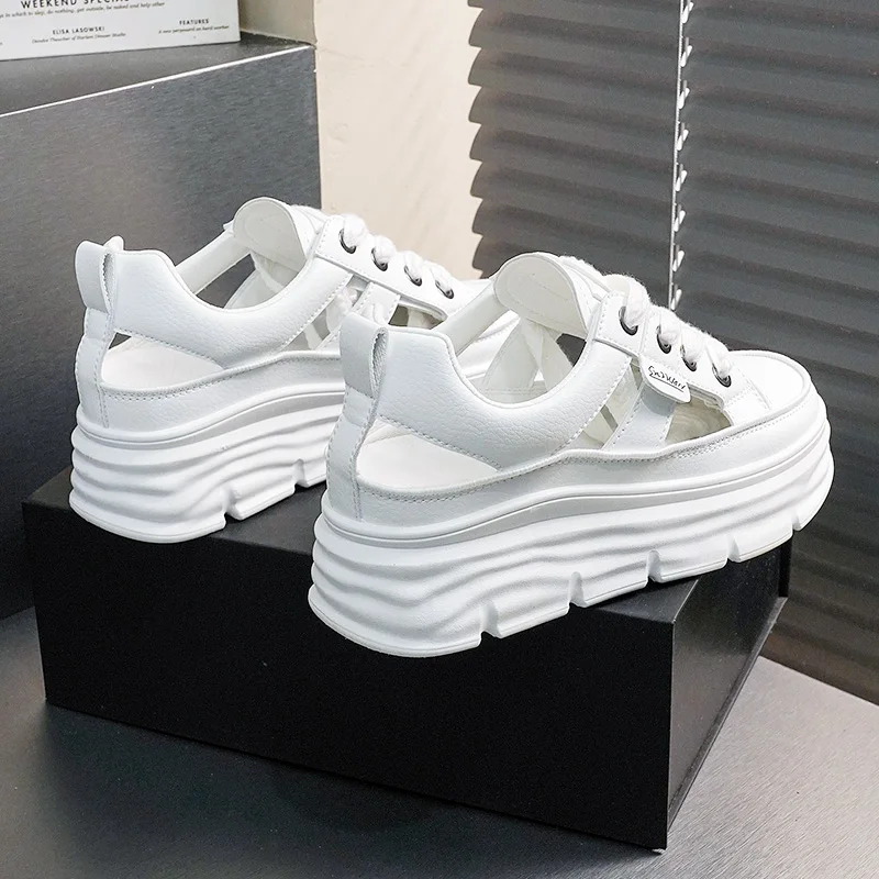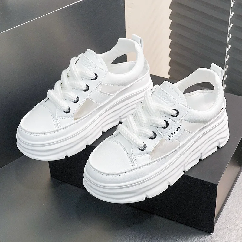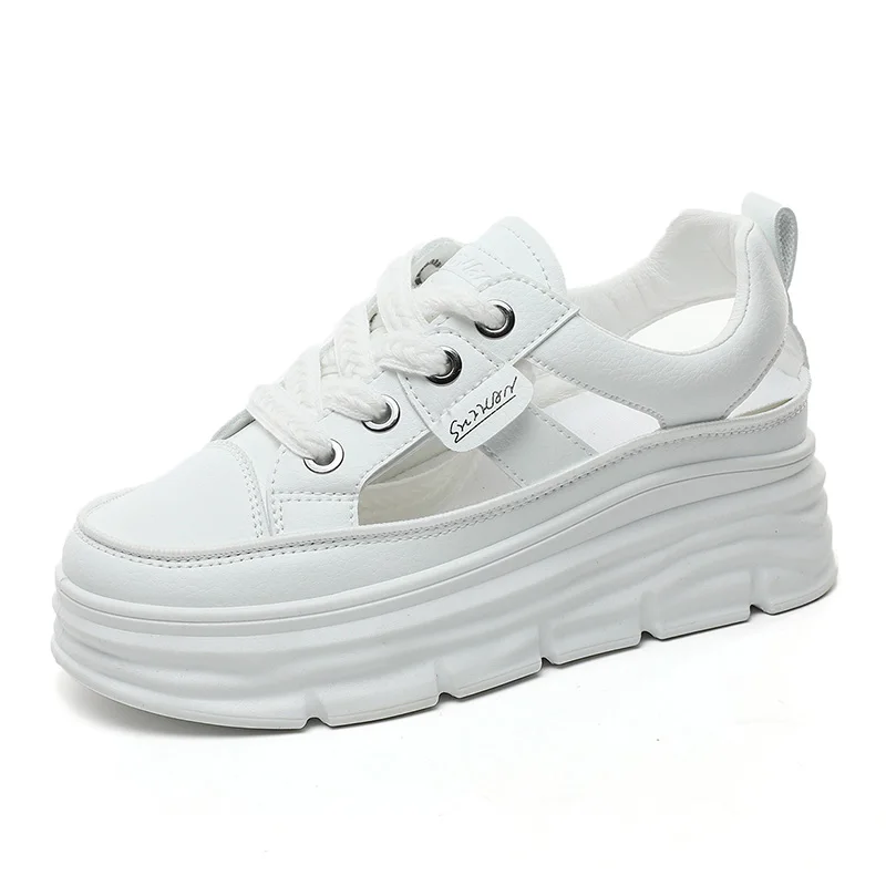 W3607 Women's Summer Loafers New Hollow Out Board Shoes with High Rise Fashion Versatile Casual Sandals Breathable Thick Sole