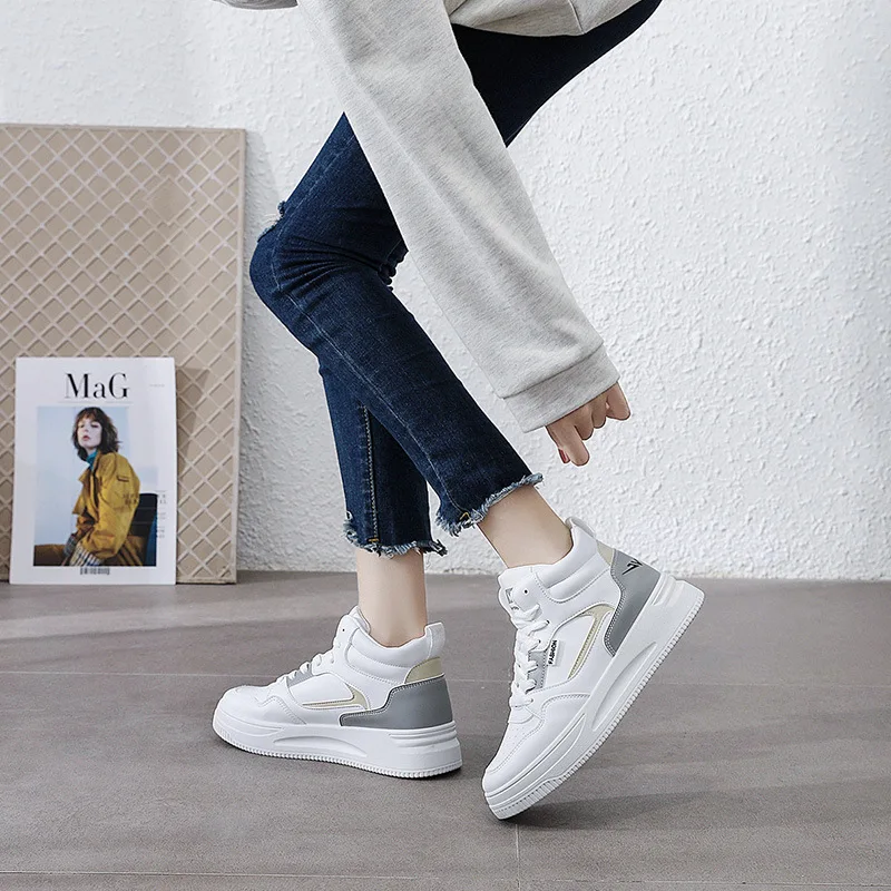 Wholesale Autumn New Arrival Women Lace-up Casual Shoes Sneakers Thick Soled Bottom White Sports